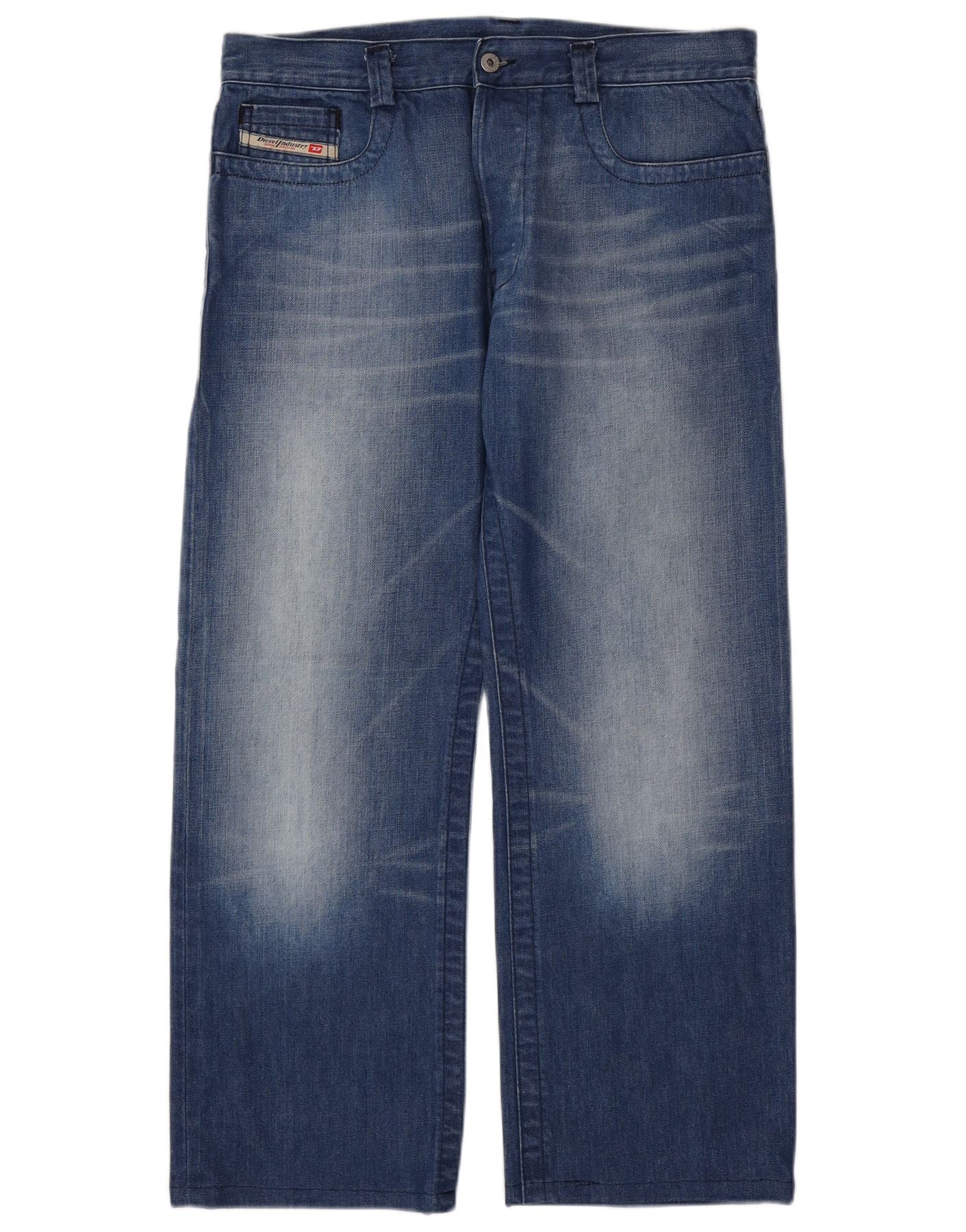 DIESEL Herren Acid Wash Straight Jeans W34 L29 Blaue Baumwolle