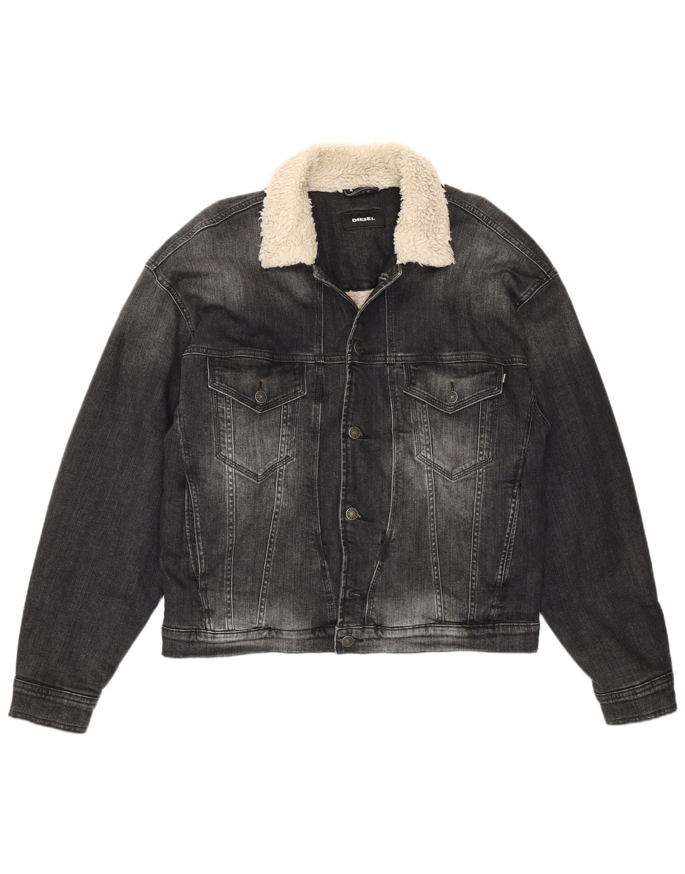DIESEL Herren Denim Sherpa Jacke UK 40 Große graue Baumwolle