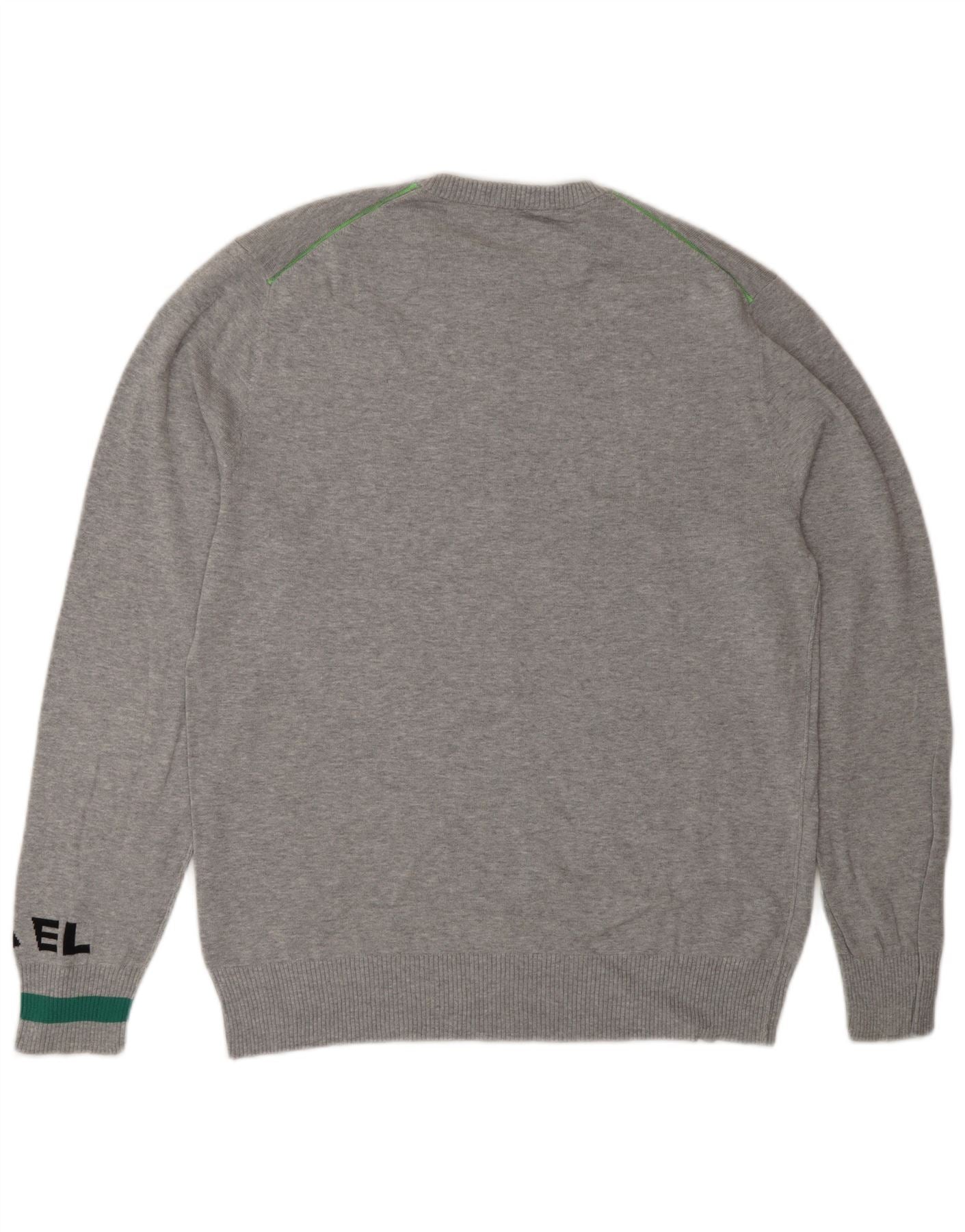 DIESEL Herren-Pullover mit grafischem Rundhalsausschnitt, groß, graue Baumwolle