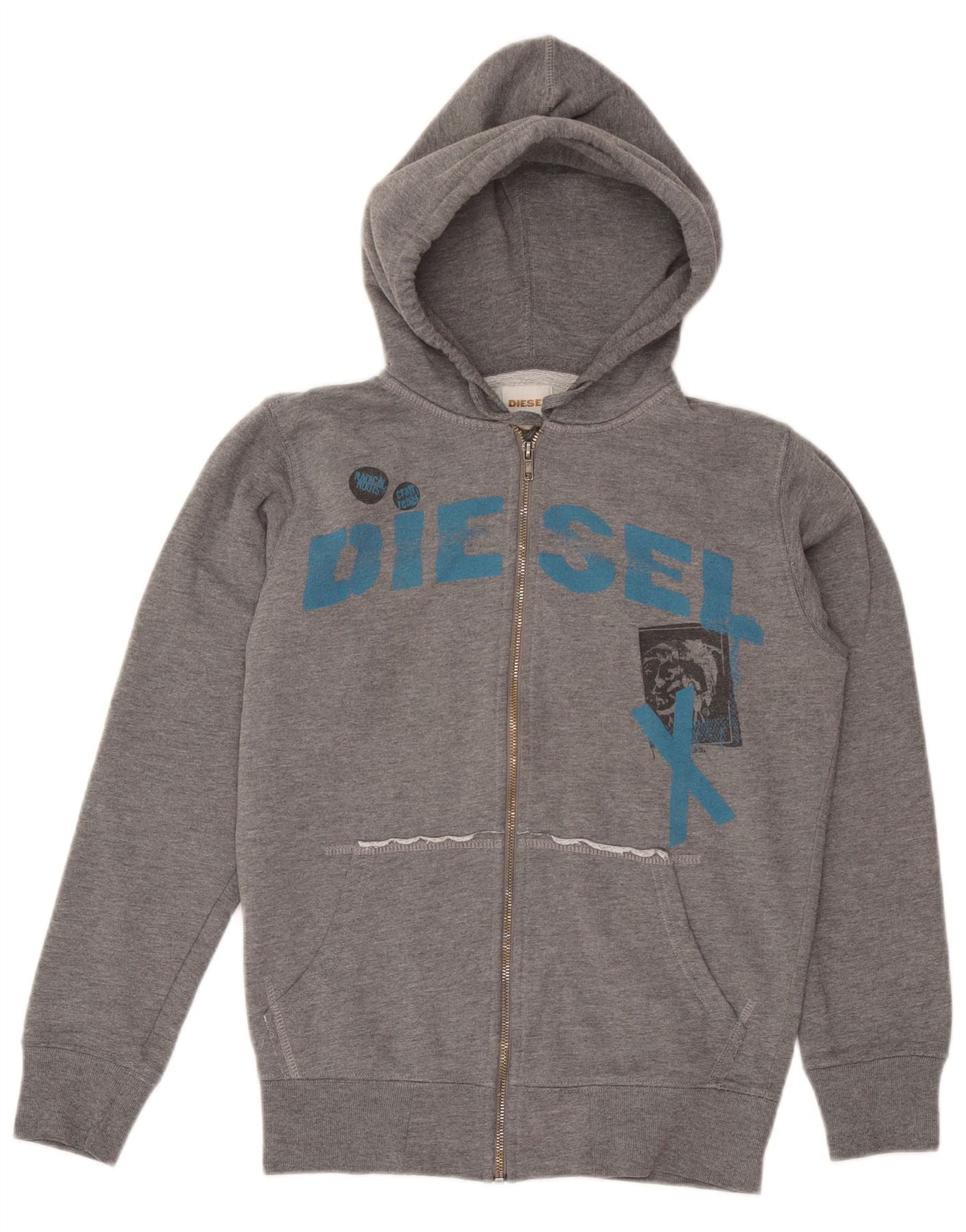 DIESEL Herren-Kapuzenpullover mit grafischem Reißverschluss, klein, graue Baumwolle