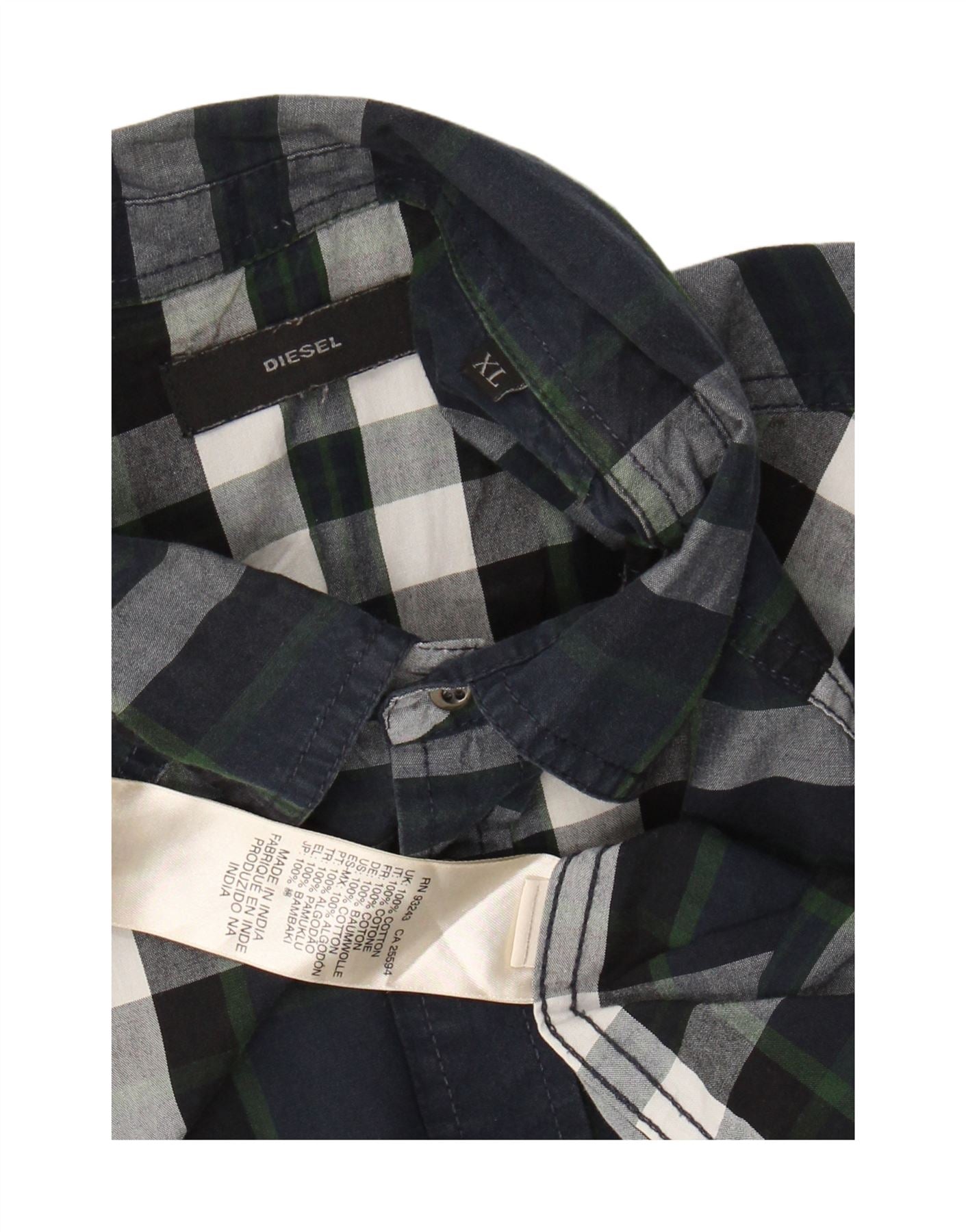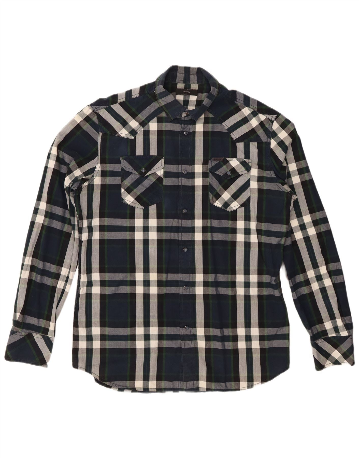 DIESEL Herrenhemd XL Marineblau kariert Baumwolle