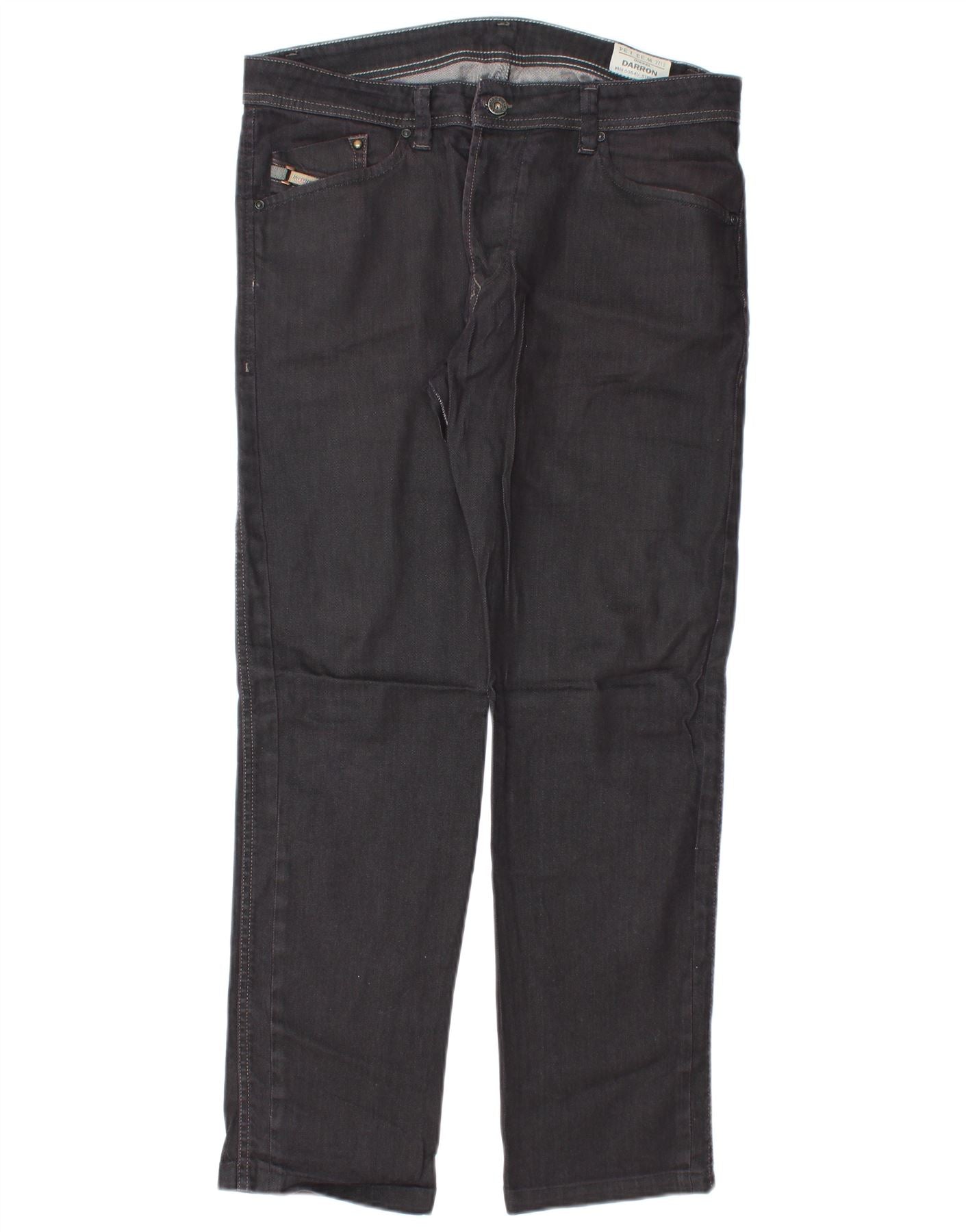 DIESEL Herren Straight Jeans W33 L30 Graue Baumwolle