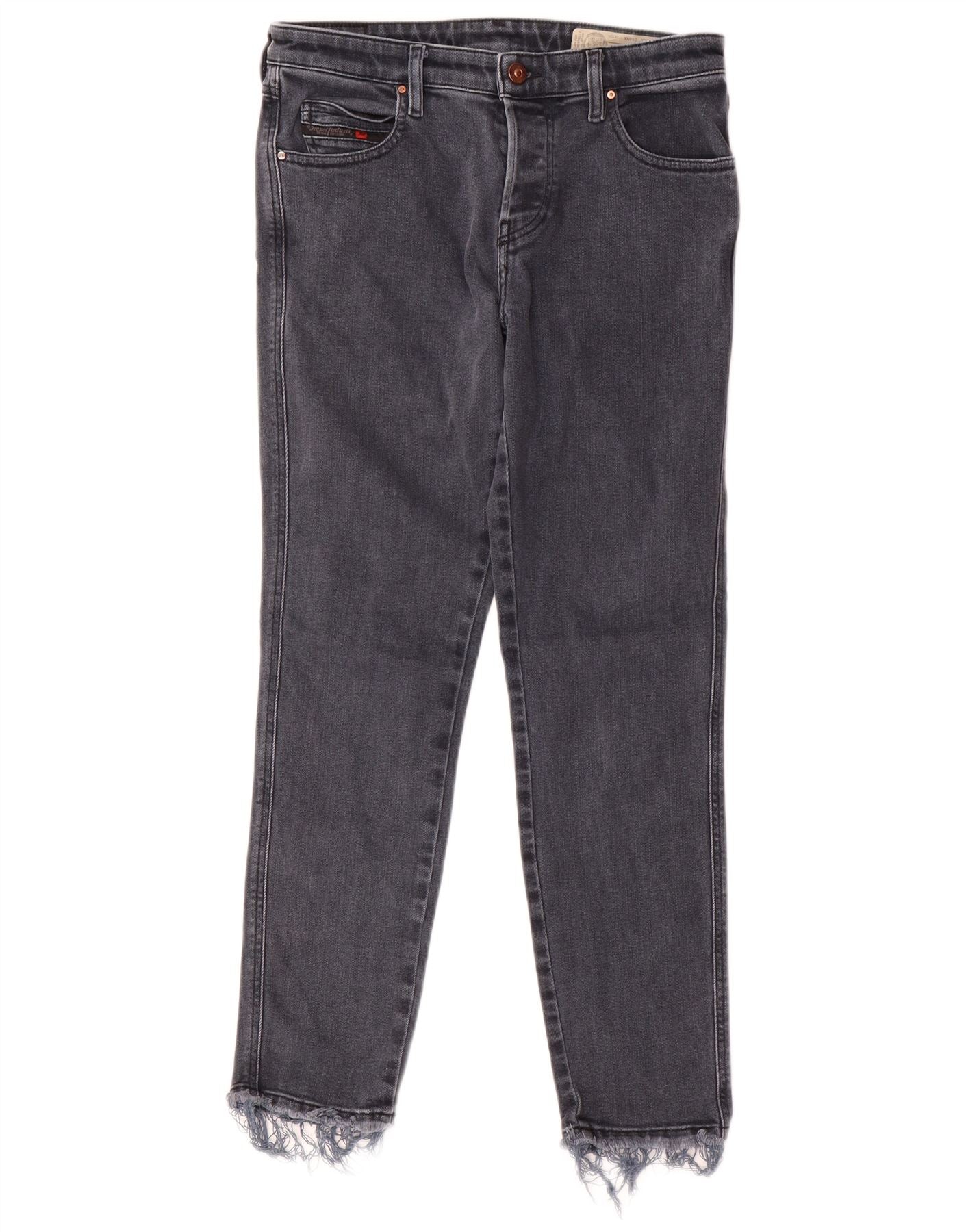 - KI-Beschreibung: Diese Röhrenjeans für Damen von Diesel sind aus einer schwarzen Baumwollmischung mit Stretch für Komfort gefertigt. Sie verfügen über eine schmale Passform und einen klassischen Knopfverschluss. Das Distressed-Finish und die stilvollen Fransendetails am Knöchel sorgen für einen modernen Touch. Dieses Design bietet eine moderne Silhouette mit mühelosem Stil, perfekt für den Alltag.