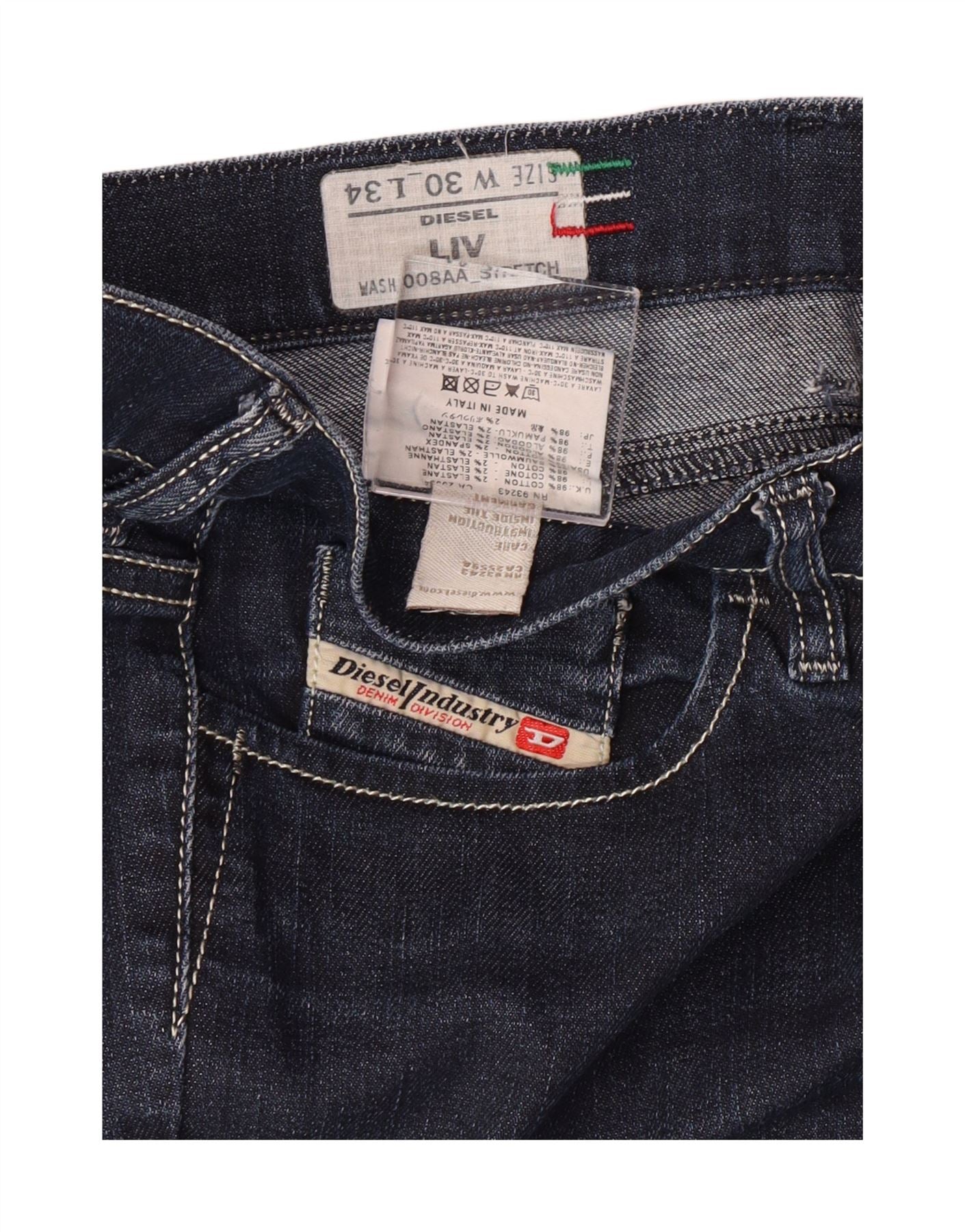 Diesel Damen Liv Slim Jeans W30 L30 Marineblau Baumwolle