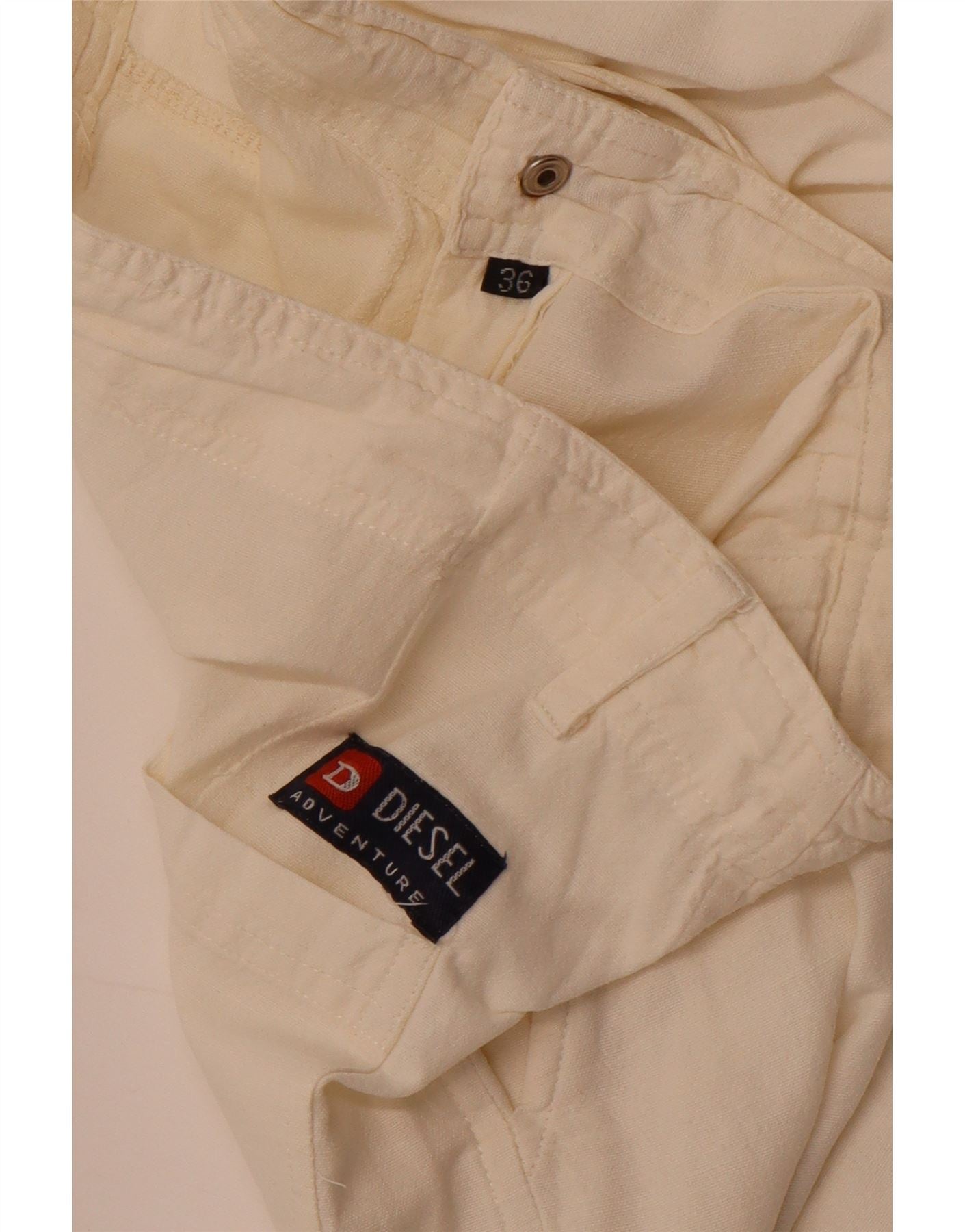 - KI-Beschreibung: Diese Freizeithose für Damen von Diesel ist aus einem bequemen, gewebten Stoff in einem cremefarbenen Farbton gefertigt. Sie zeichnen sich durch eine entspannte Passform und ein weites Beindesign aus. Ein elastischer Bund und ein Kordelzugverschluss sorgen für Komfort und Einstellbarkeit. Praktische Taschen sind im Lieferumfang enthalten. Ein dezenter Markenlogo-Akzent sorgt für einen charakteristischen Touch.