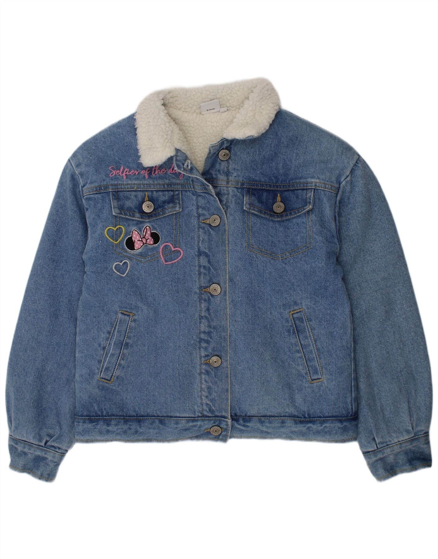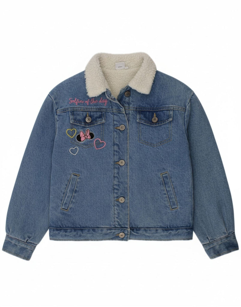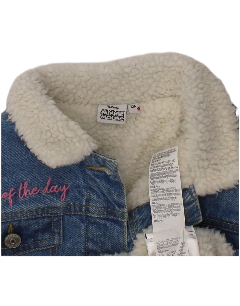 DISNEY Girls Minnie Graphic Sherpa Denim Jacket 9-10 Years Blue Cotton