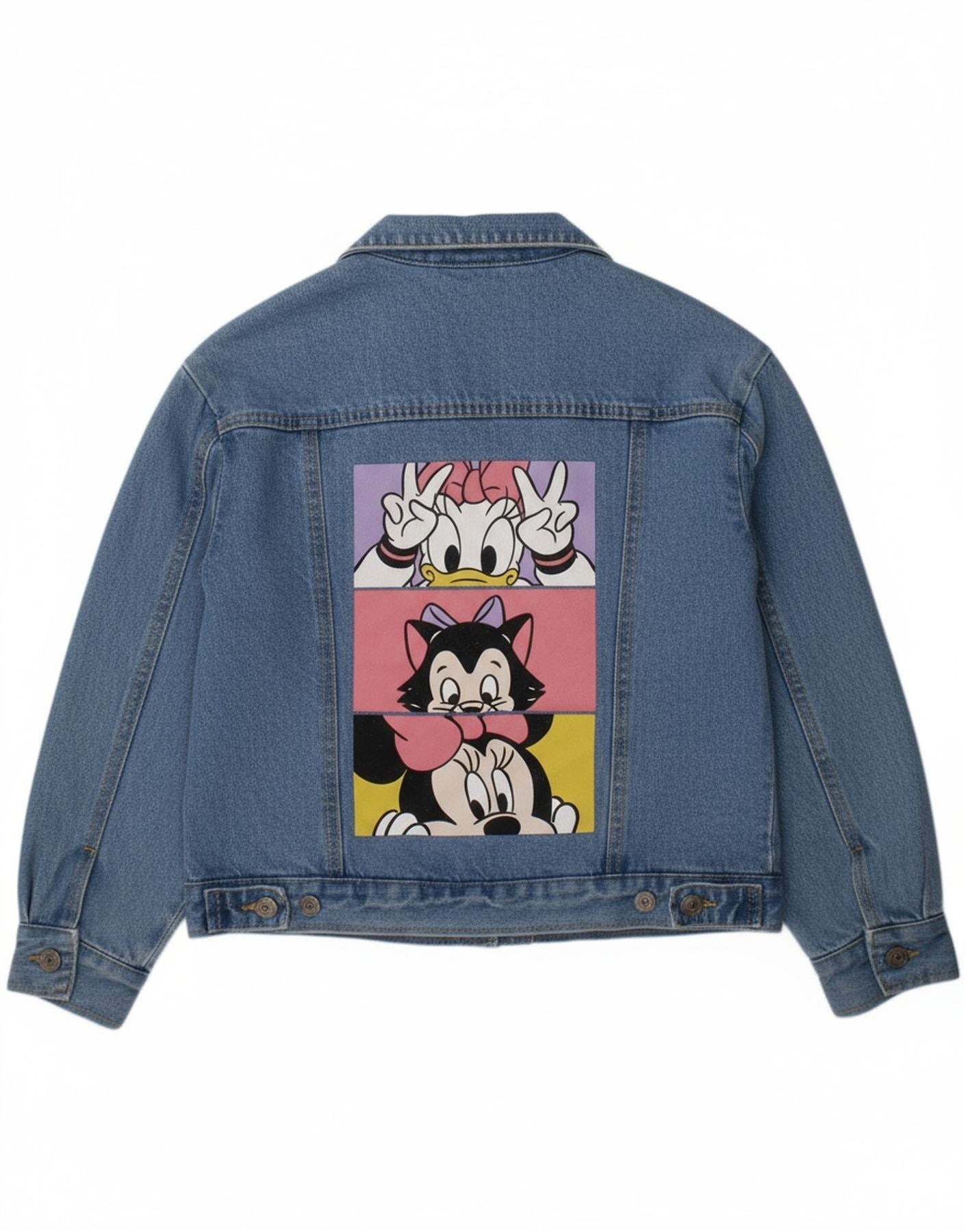 - AI Description: This Disney girls denim jacket is crafted from sturdy blue cotton denim. It features a classic collared neckline and a full button-up front. Long sleeves and a regular fit ensure comfortable wear. The jacket is lined with polyester for added comfort and includes practical pockets. An embroidered Minnie Mouse graphic adds a playful, iconic touch to the back.