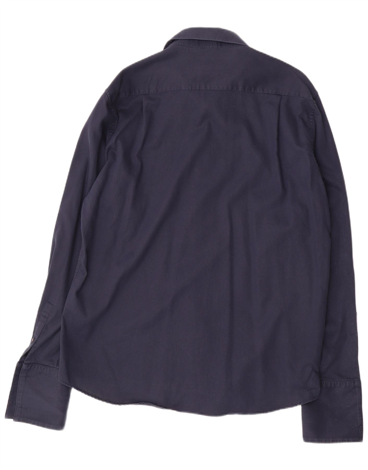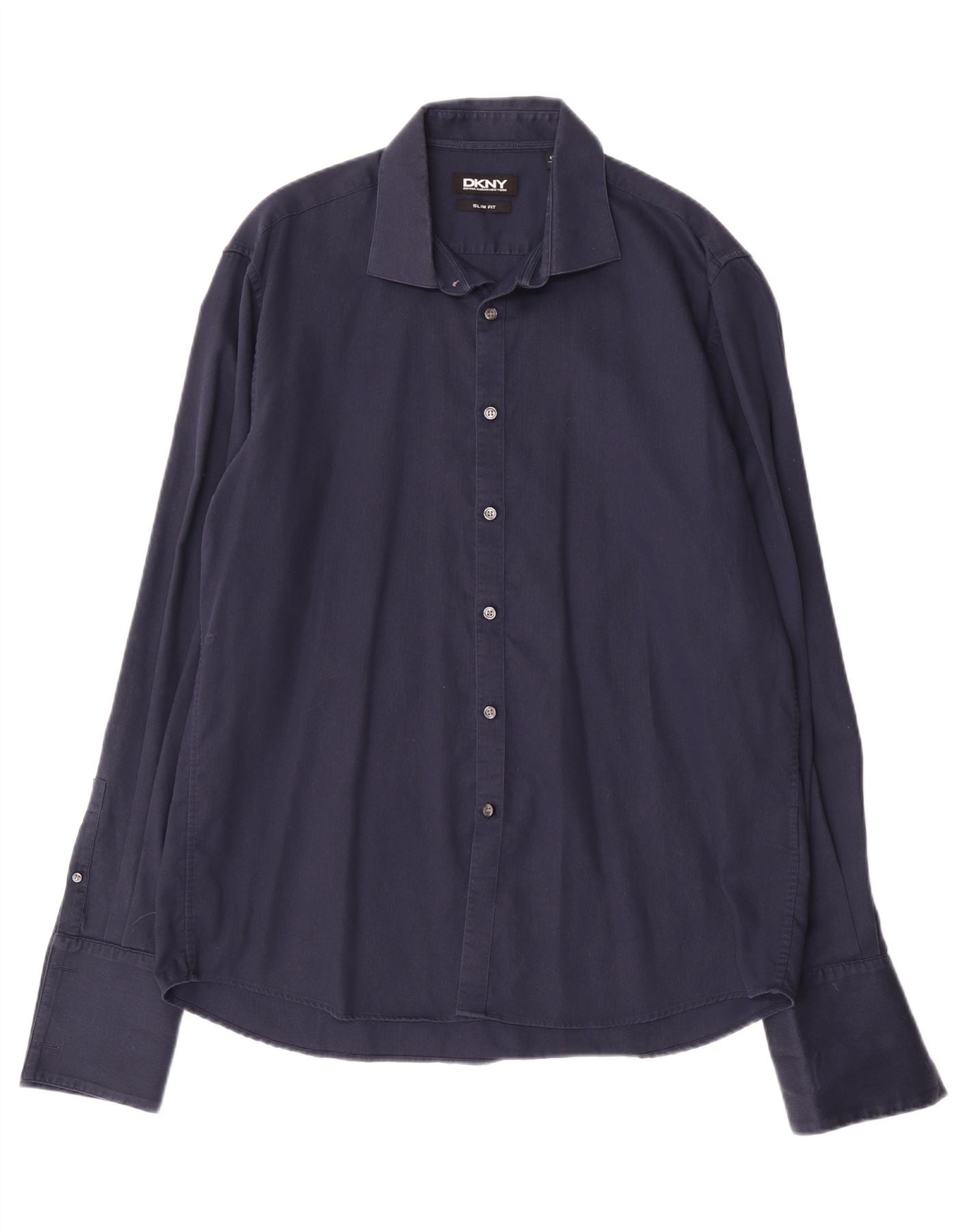 DKNY Herren-Hemd mit schmaler Passform, Größe 17 1/2 44 XL, marineblaue Baumwolle