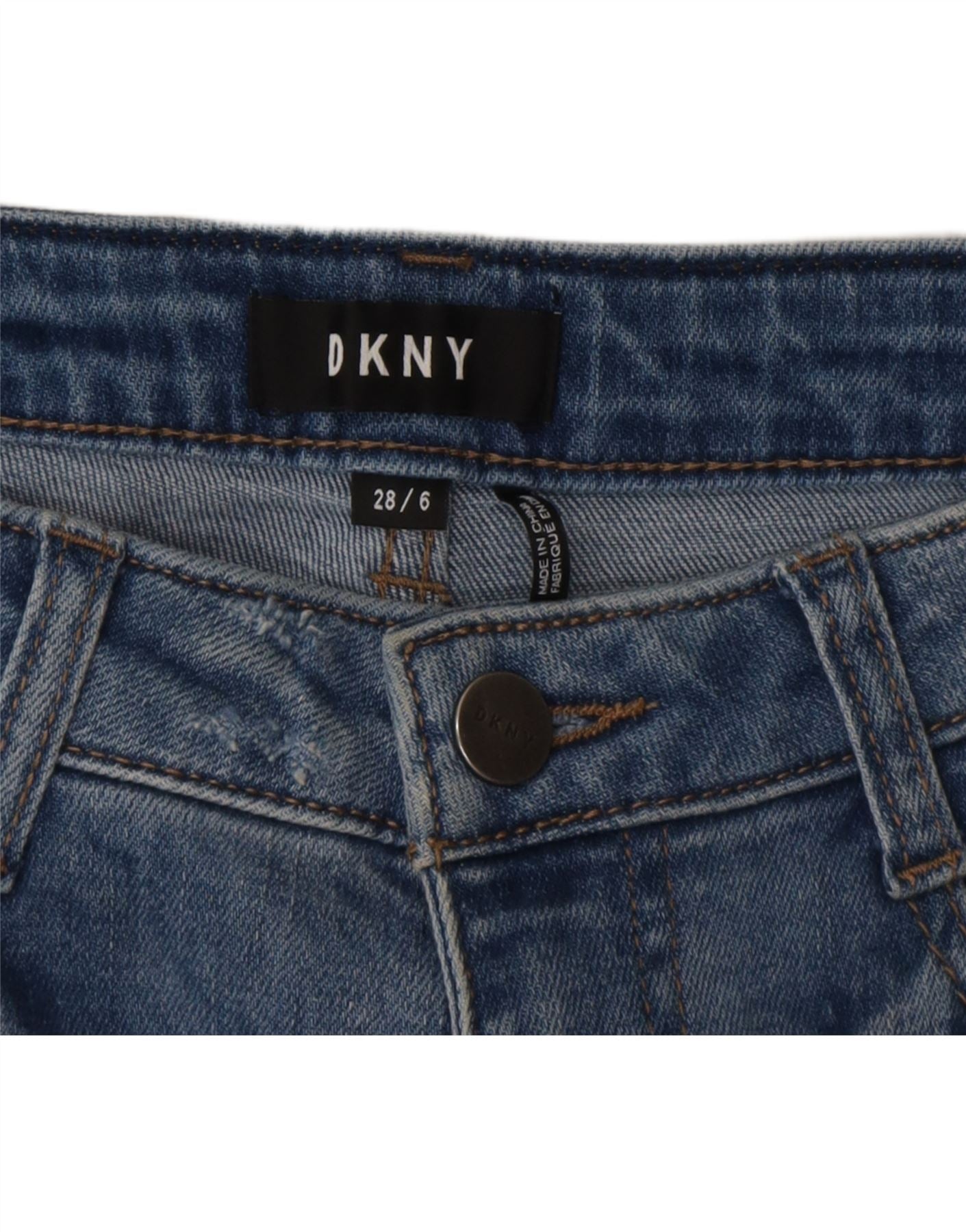 DKNY Damen Distressed Skinny Jeans US 6 Medium W28 L29 Blaue Baumwolle