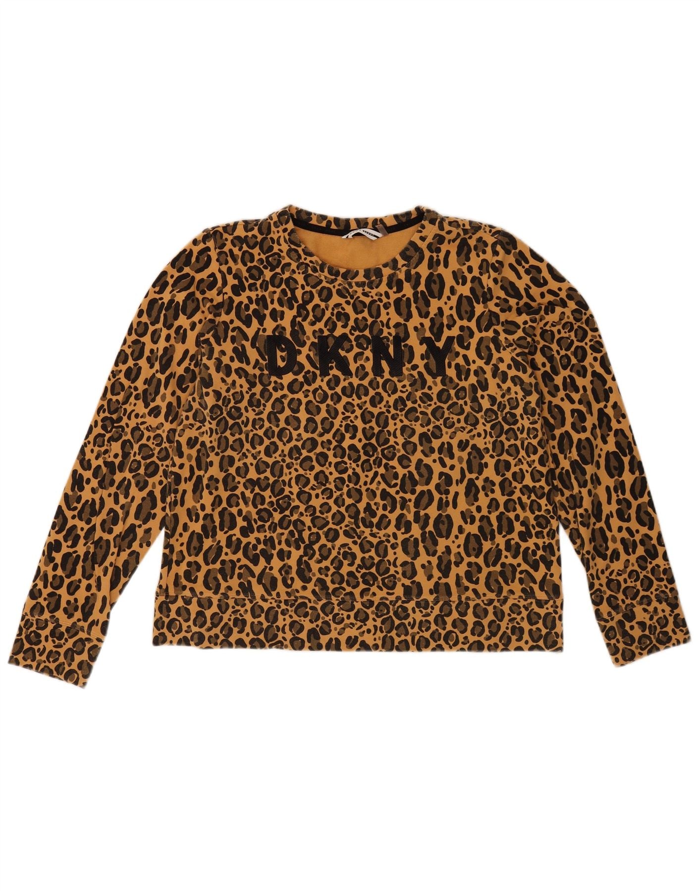 DKNY Womens Graphic Top Long Sleeve UK 14 Medium Brown Animal Print Cotton