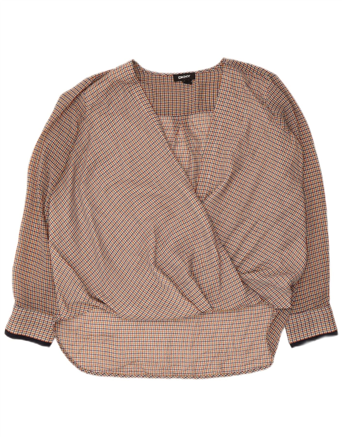 Home > Damen > Depop-Kleidung > DKNY Damen-Blusenoberteil mit langen Ärmeln, Größe 46, mehrfarbig, Hahnentrittmuster