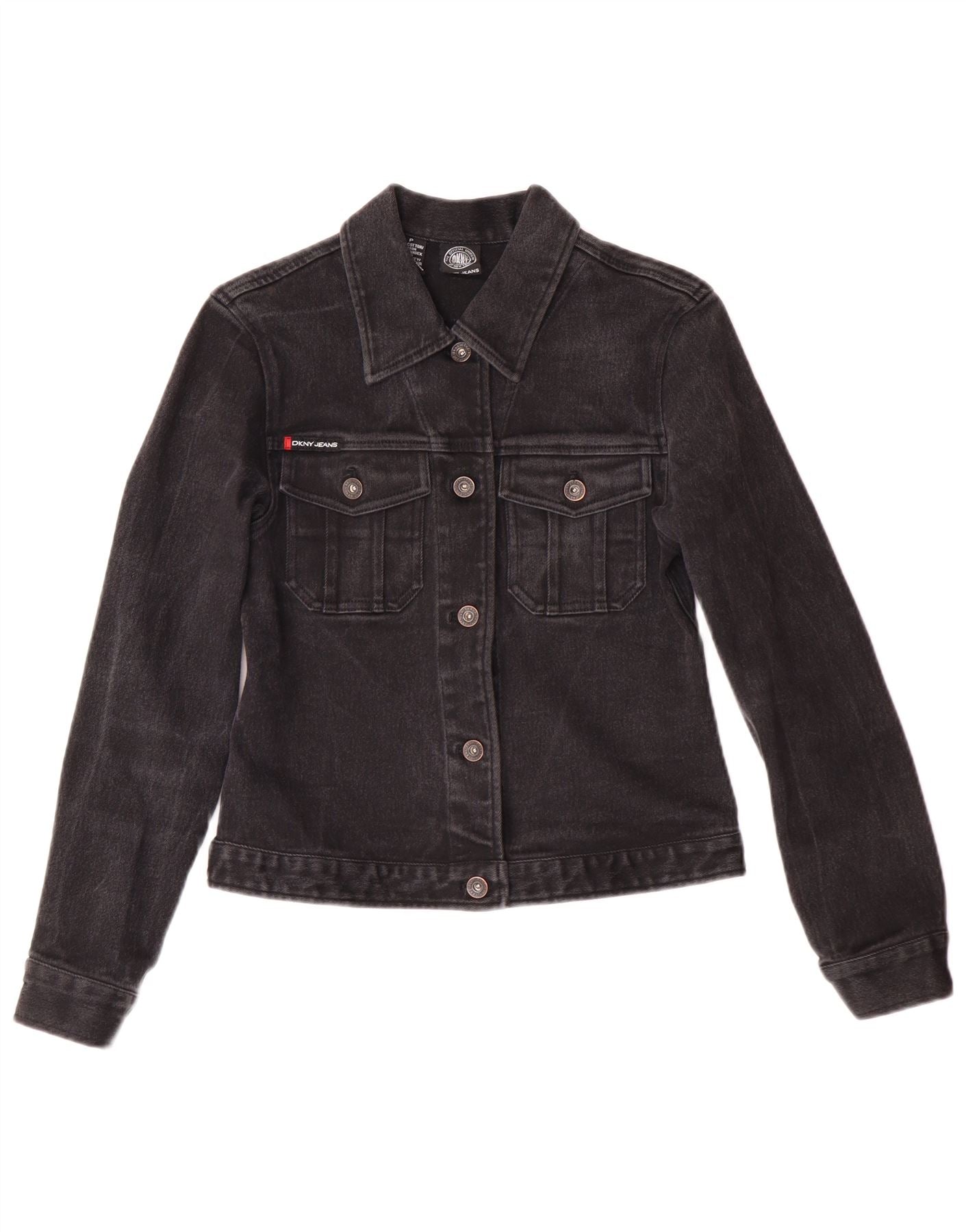 Dkny Womens Petite Denim Jeansjacke UK 6 XS Black Cotton Classic