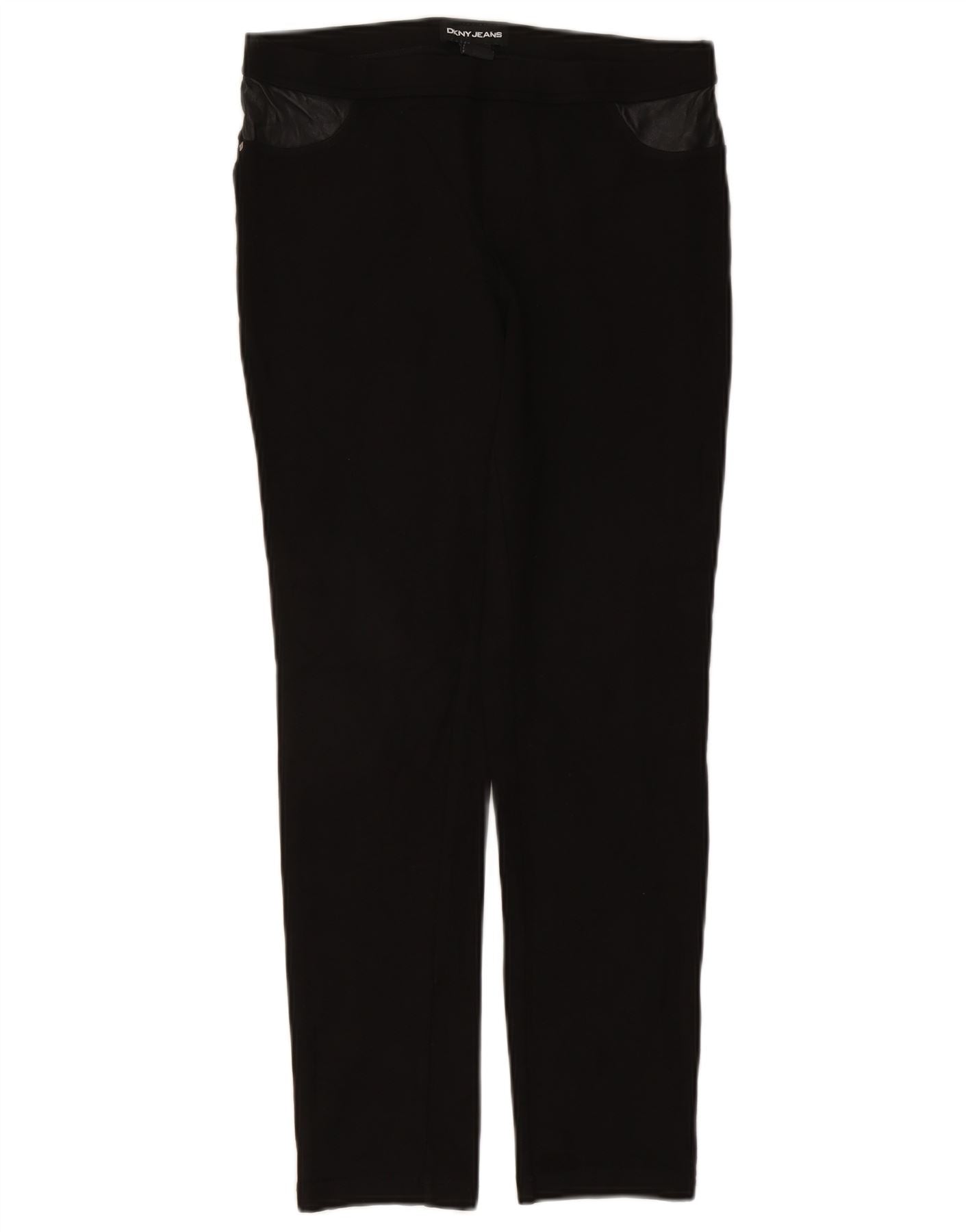 - KI-Beschreibung: Diese DKNY-Damenhose ist aus einer bequemen schwarzen Baumwoll-Jersey-Mischung gefertigt und bietet Dehnbarkeit und ein geschmeidiges Tragegefühl. Sie zeichnen sich durch eine moderne Slim-Passform mit schmaler Beinsilhouette aus. Das Pull-on-Design verfügt über einen elastischen Bund für mehr Komfort. Details aus Kunstleder an den Taschen sorgen für einen stilvollen Touch. Ein dezentes DKNY-Logo am Bund rundet den modernen Look ab.