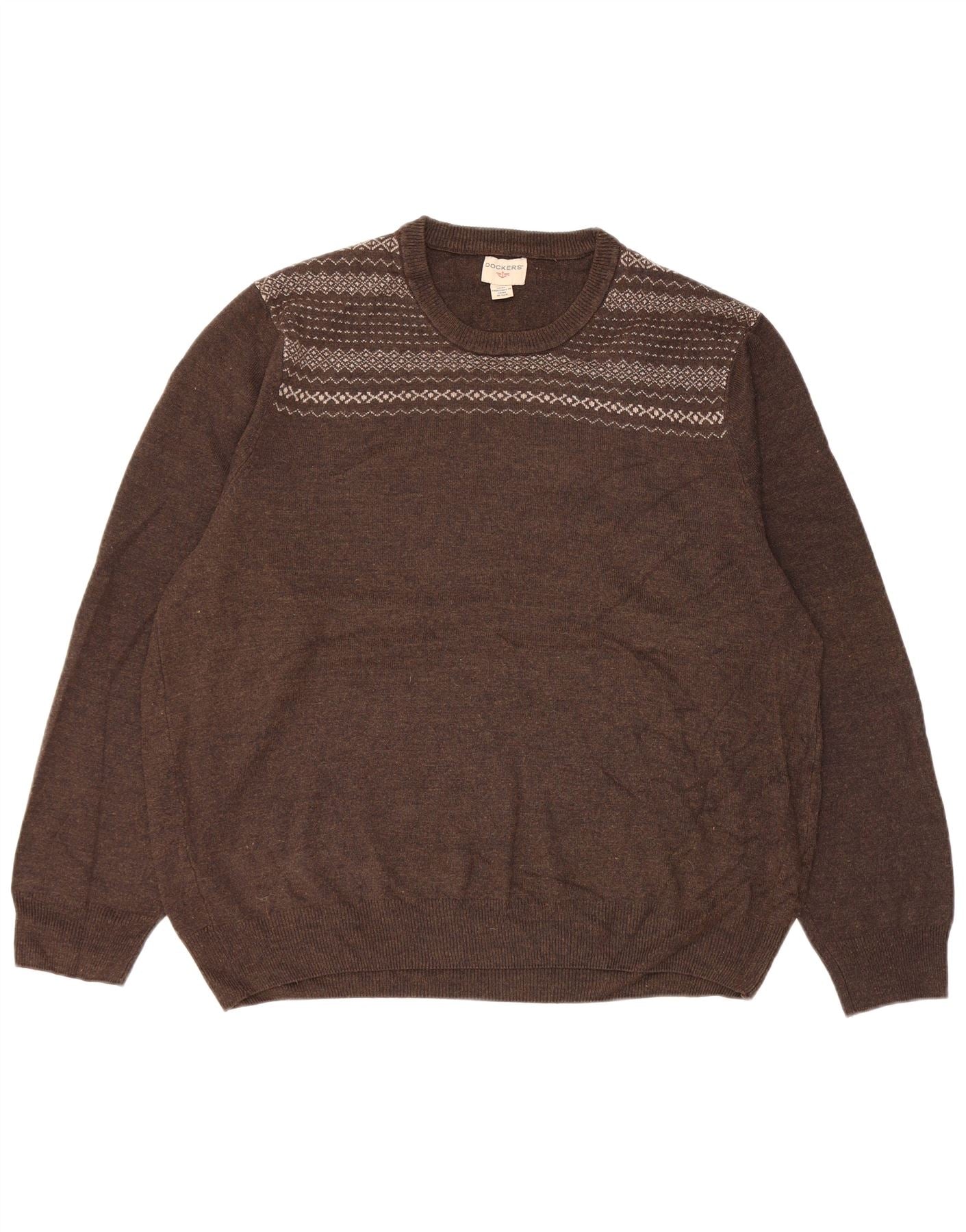 Dockers Herren-Pullover mit Rundhalsausschnitt, XL, braun, Fair-Isle-Acryl