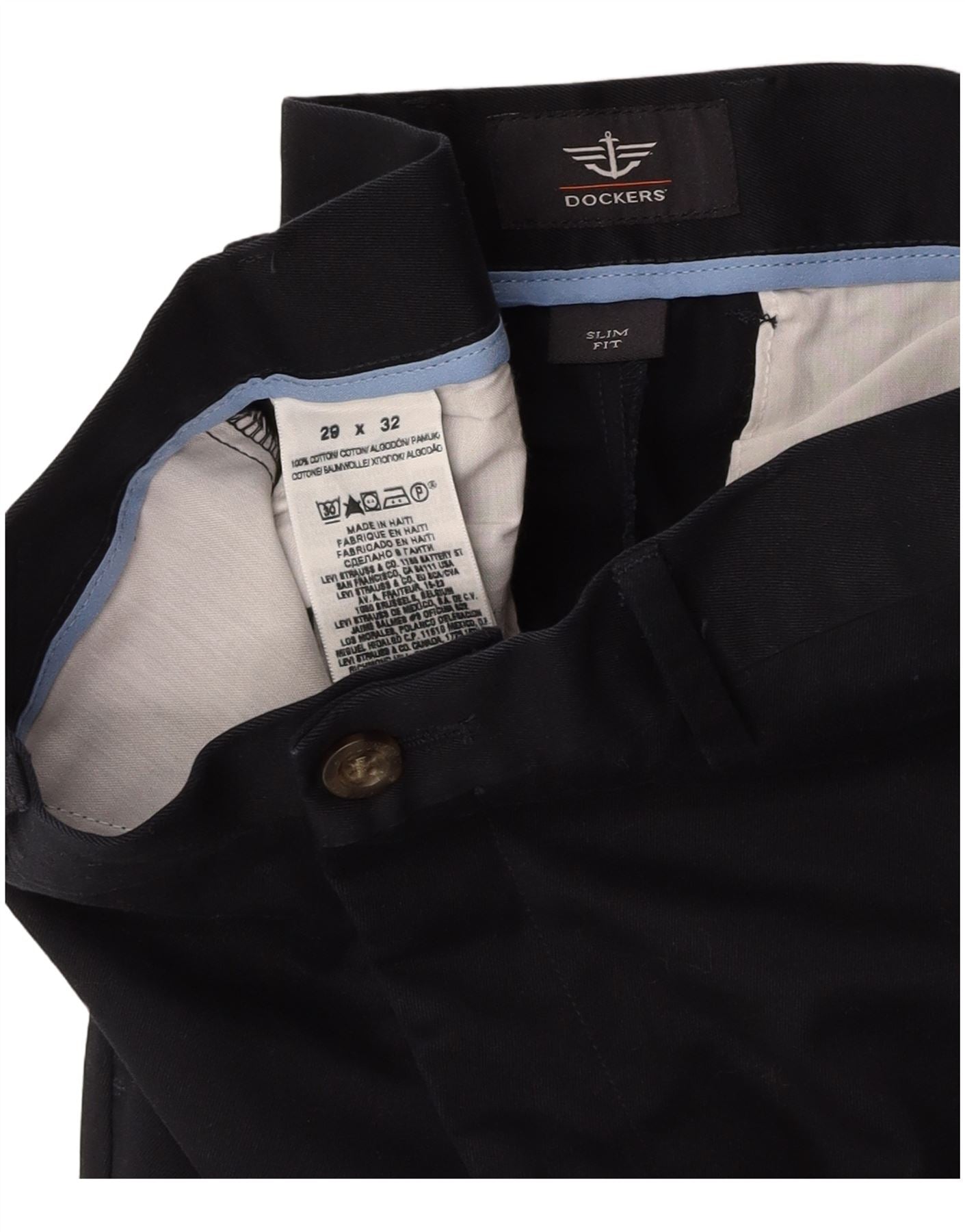 DOCKERS Herren Slim Fit Chinohose W29 L32 Marineblaue Baumwolle