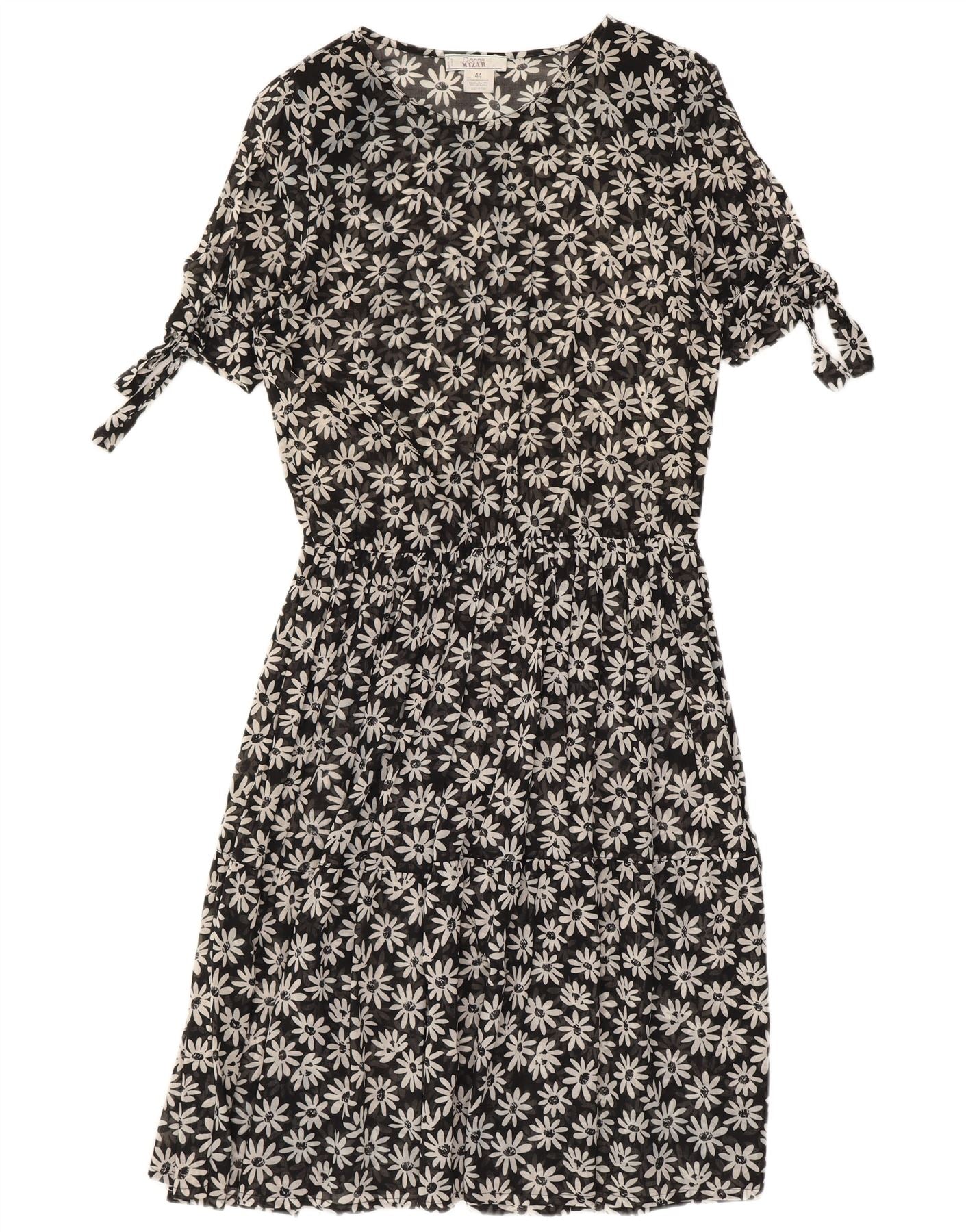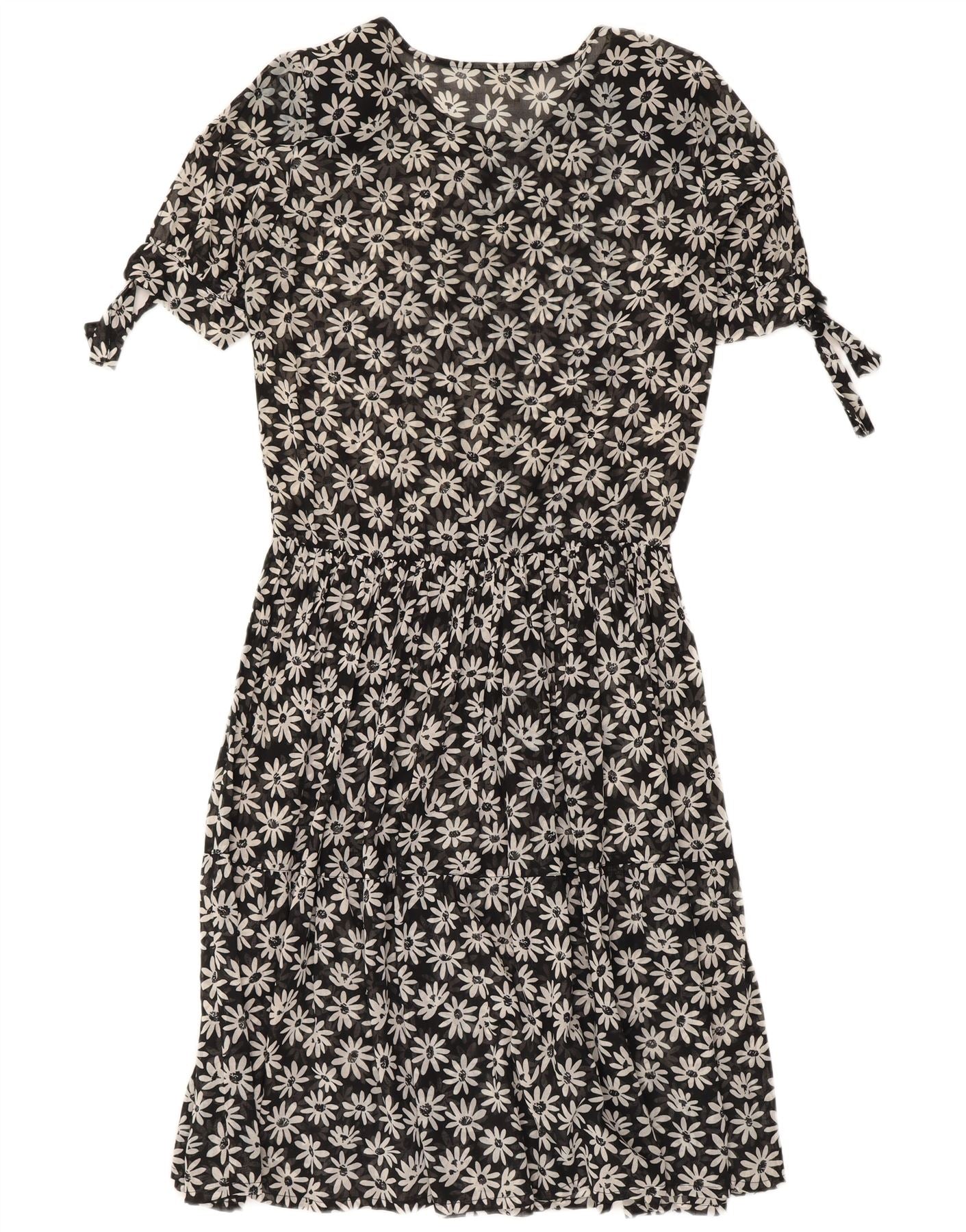 DONNA MIZAR Damen Maxikleid IT 44 Mittelschwarze geblümte Baumwolle