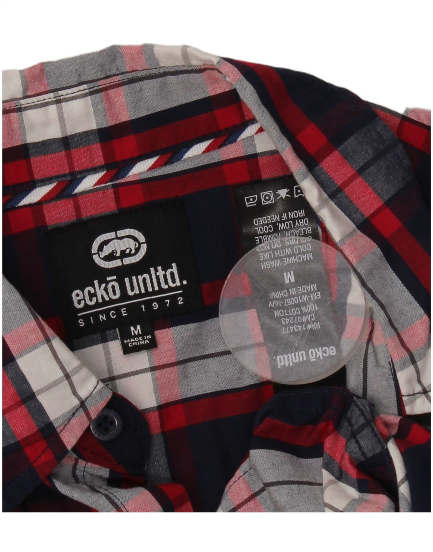 ECKO UNLTD Mens Short Sleeve Shirt Medium Navy Blue Check Cotton