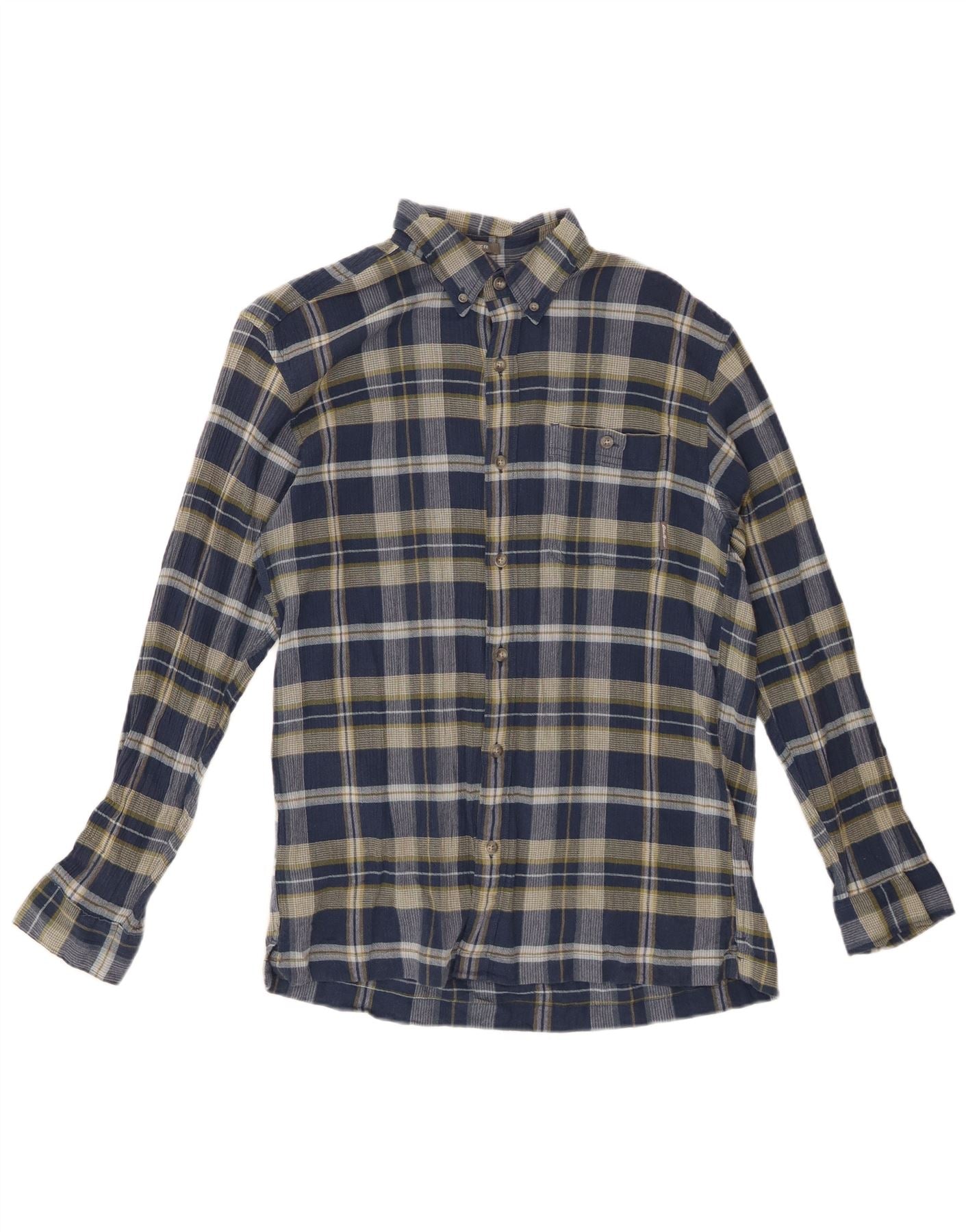 EDDIE BAUER Herren-Flanellhemd mit klassischer Passform, mittlere marineblaue Karo-Baumwolle