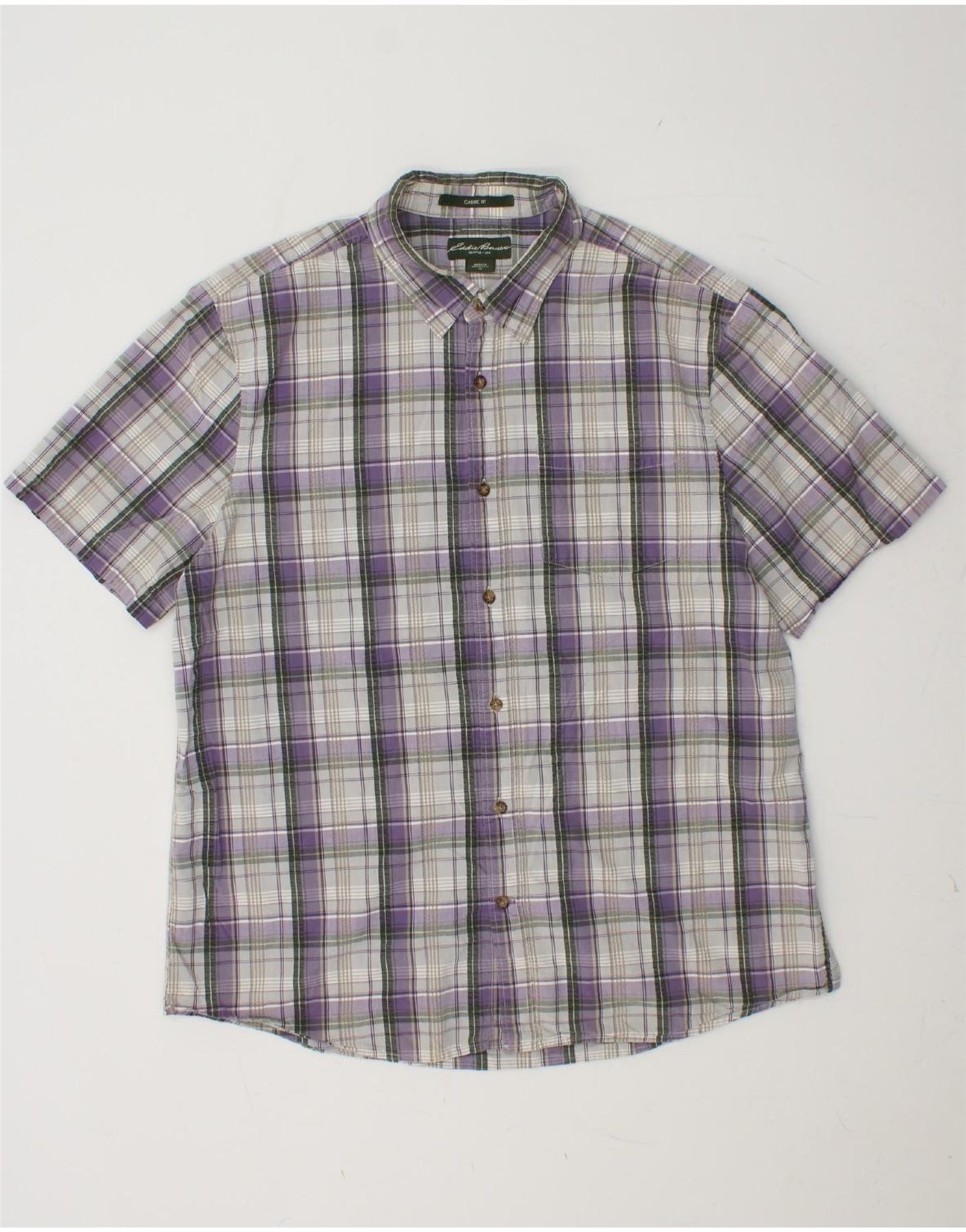 EDDIE BAUER Herren-Kurzarmhemd mit klassischer Passform, XL, lila kariert