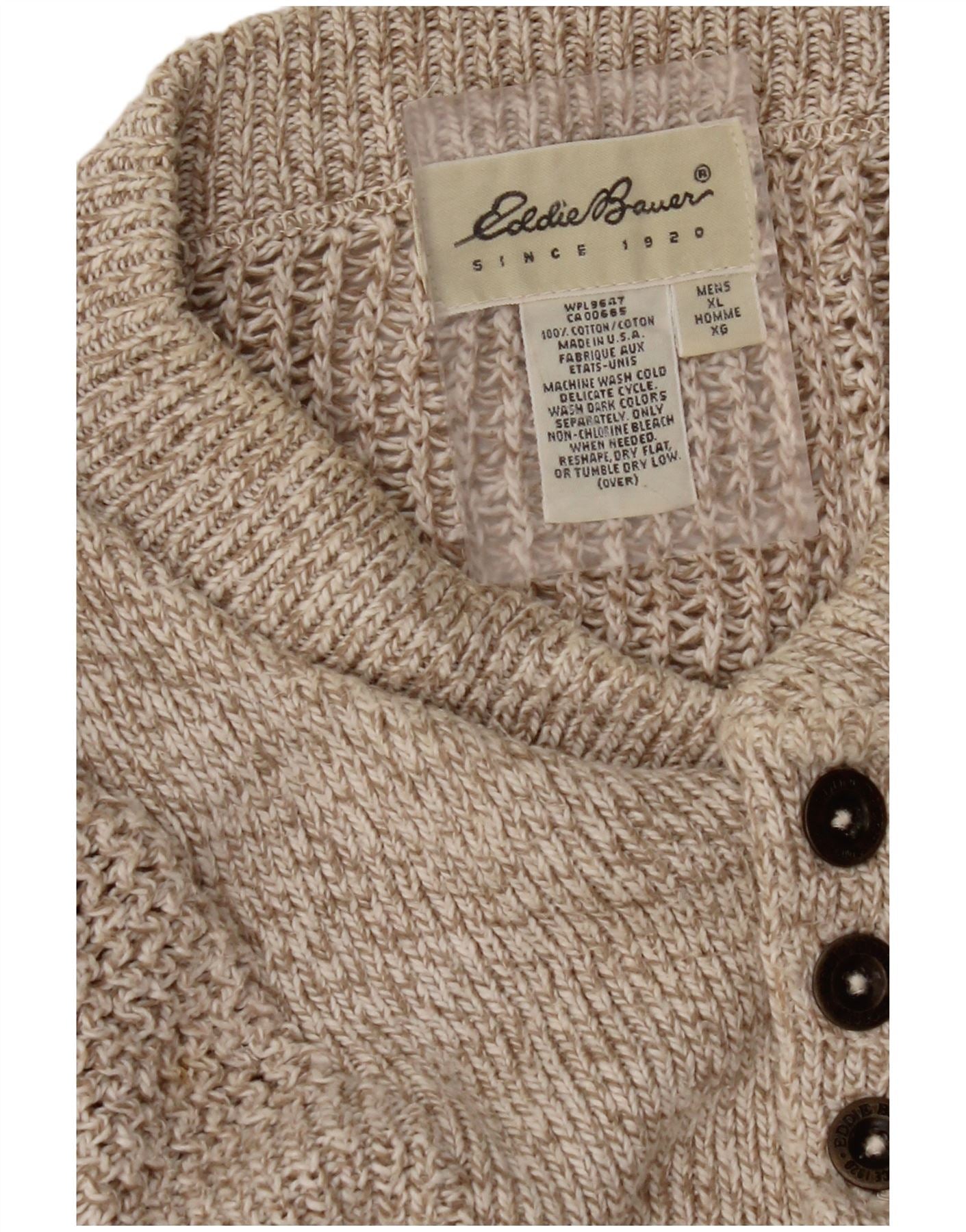 EDDIE BAUER Herren-Pullover, übergroß, Knopfkragen, XL, Beige gefleckt