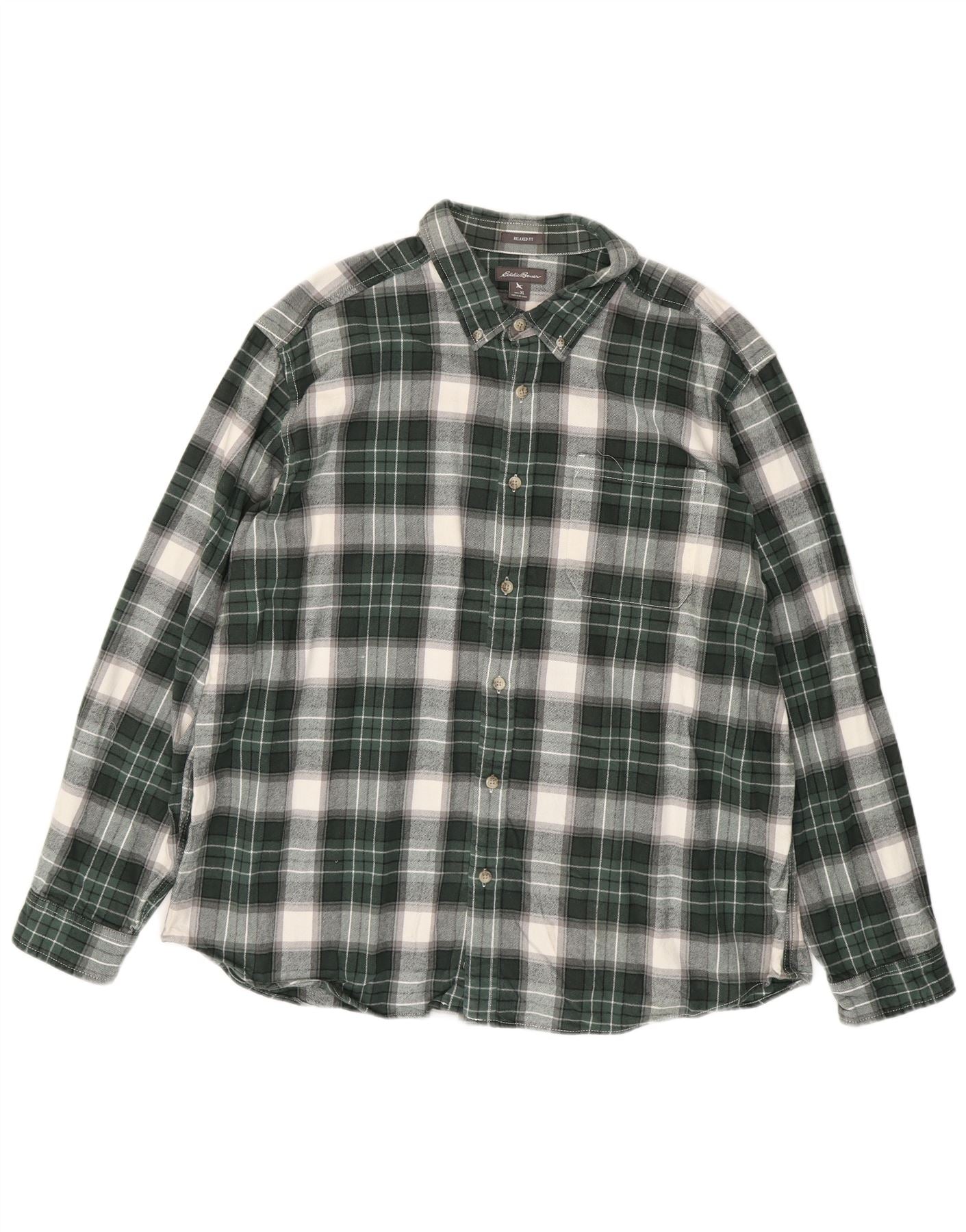 EDDIE BAUER Herren-Flanellhemd mit entspannter Passform, XL, grün kariert, Baumwolle