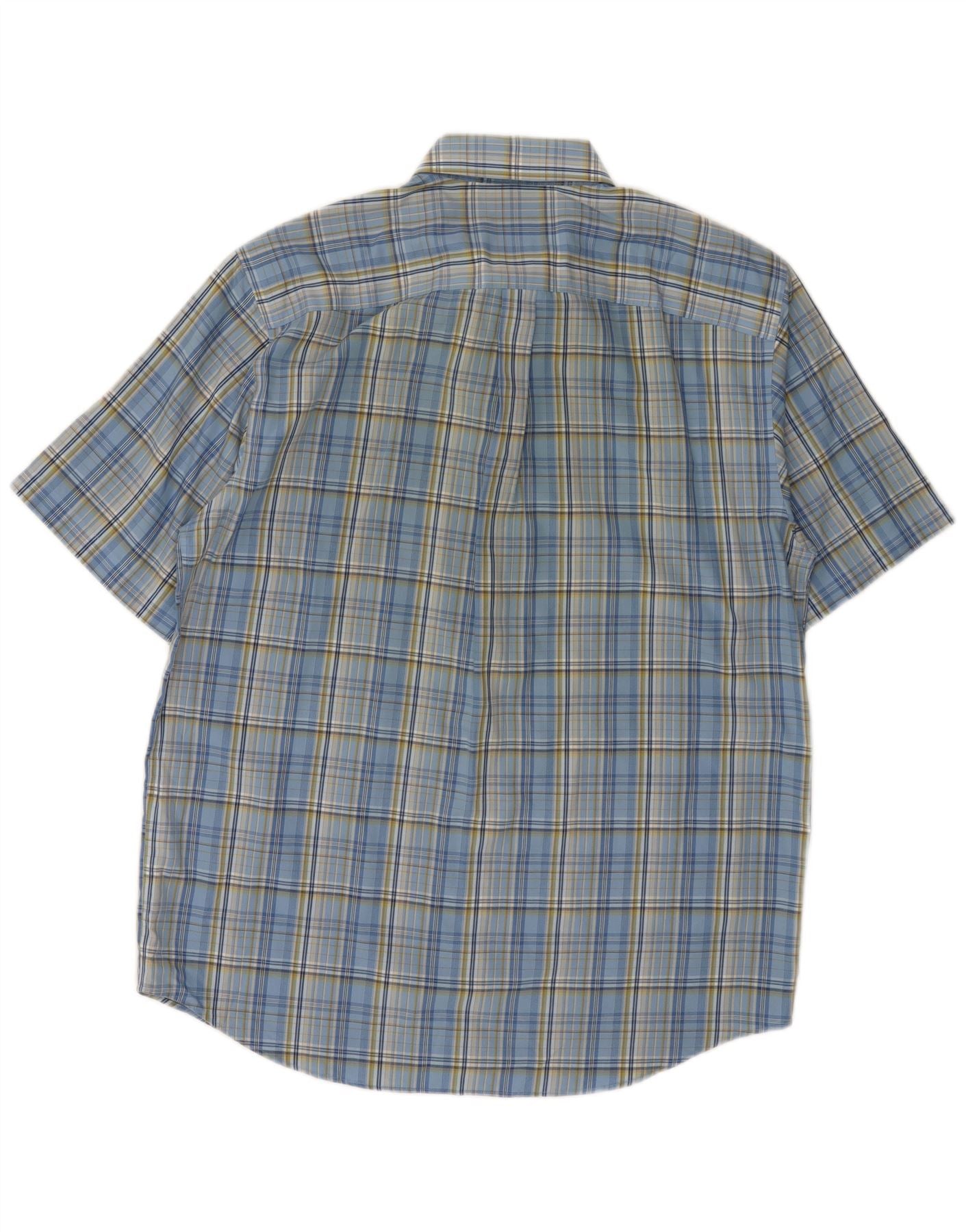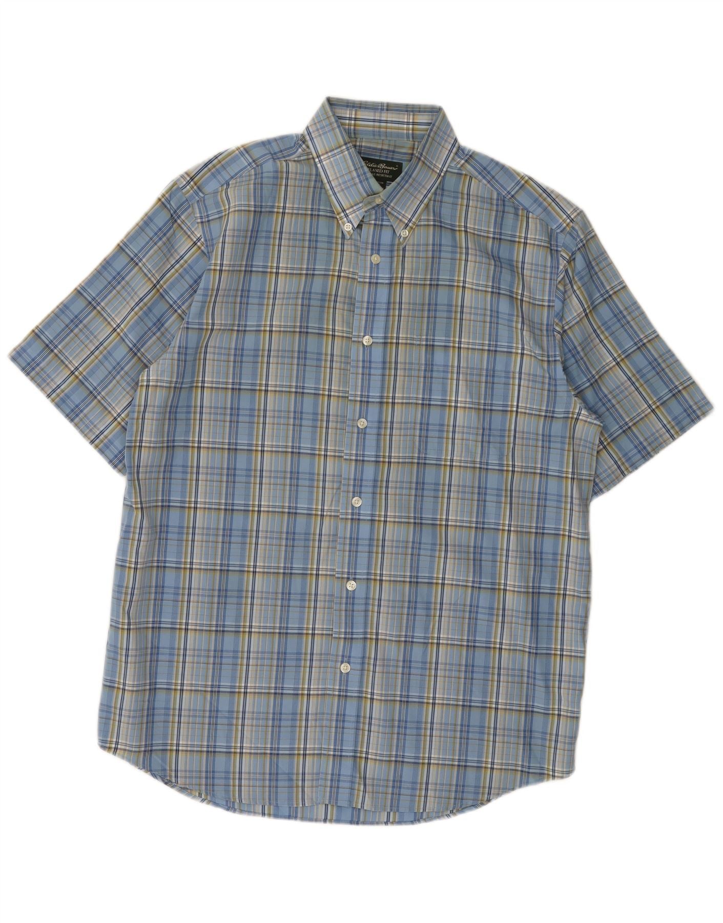 EDDIE BAUER Herren-Kurzarmhemd mit entspannter Passform, mittelblau karierte Baumwolle