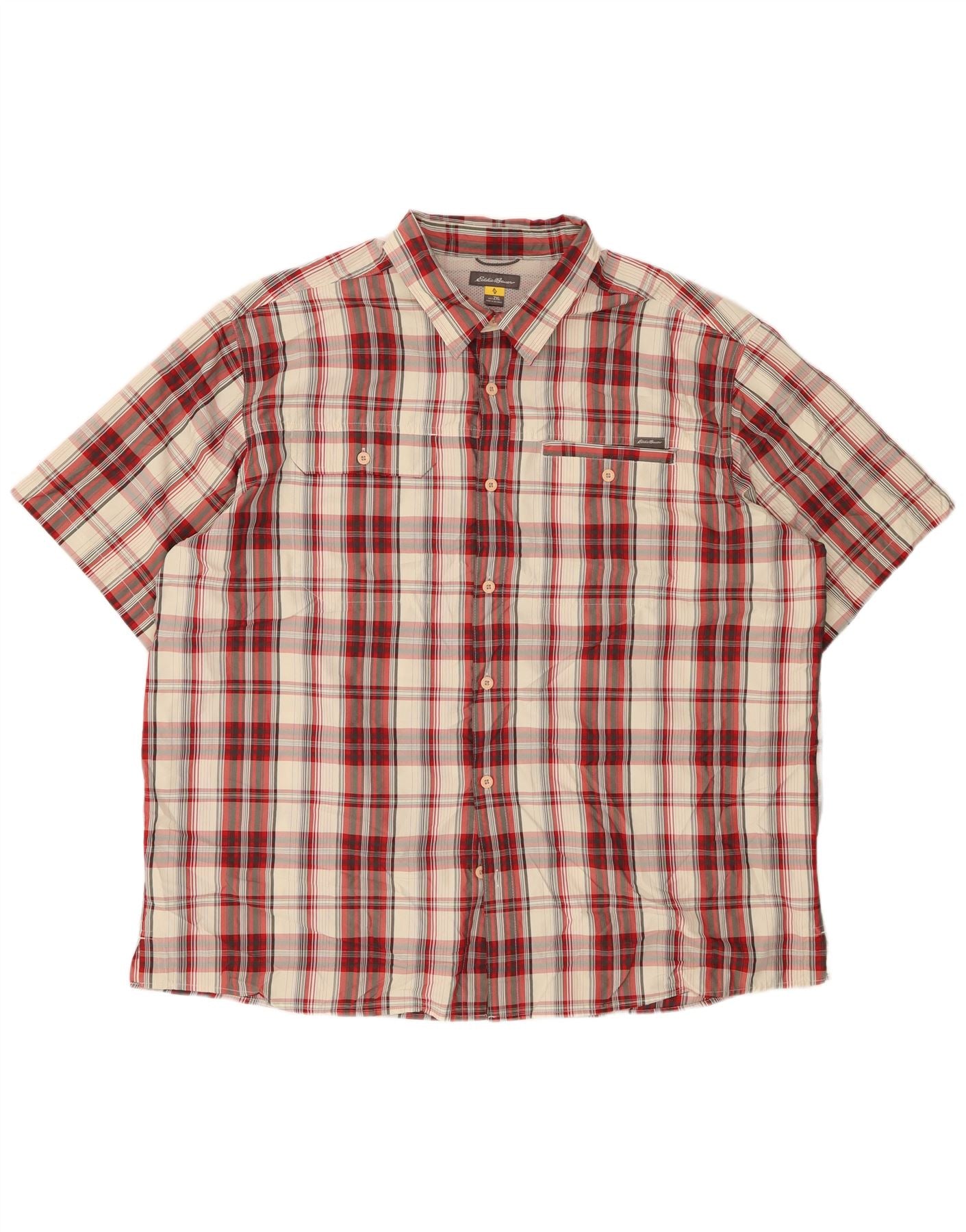EDDIE BAUER Herren Kurzarmhemd 2XL Rot kariert Polyester