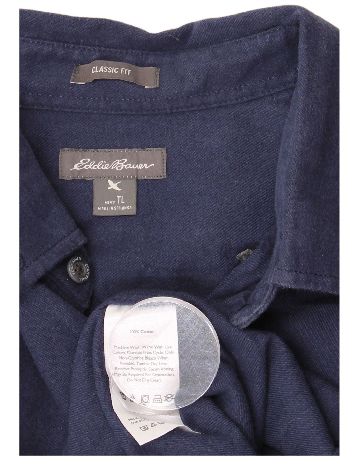 Eddie Bauer Mens Tall Classic Fit Flannel Shirt Large Navy Blue Cotton