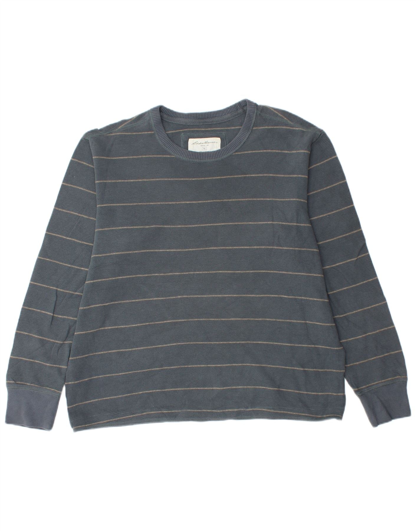 EDDIE BAUER Herren Top Langarm XL Blau gestreift Baumwolle
