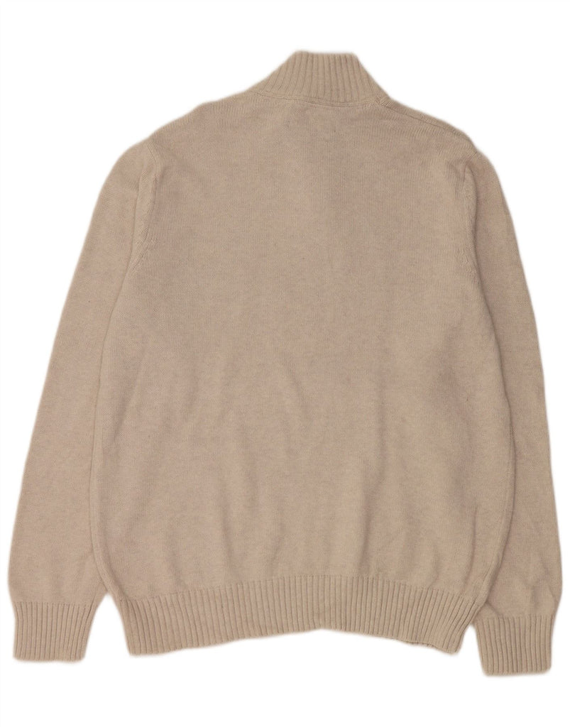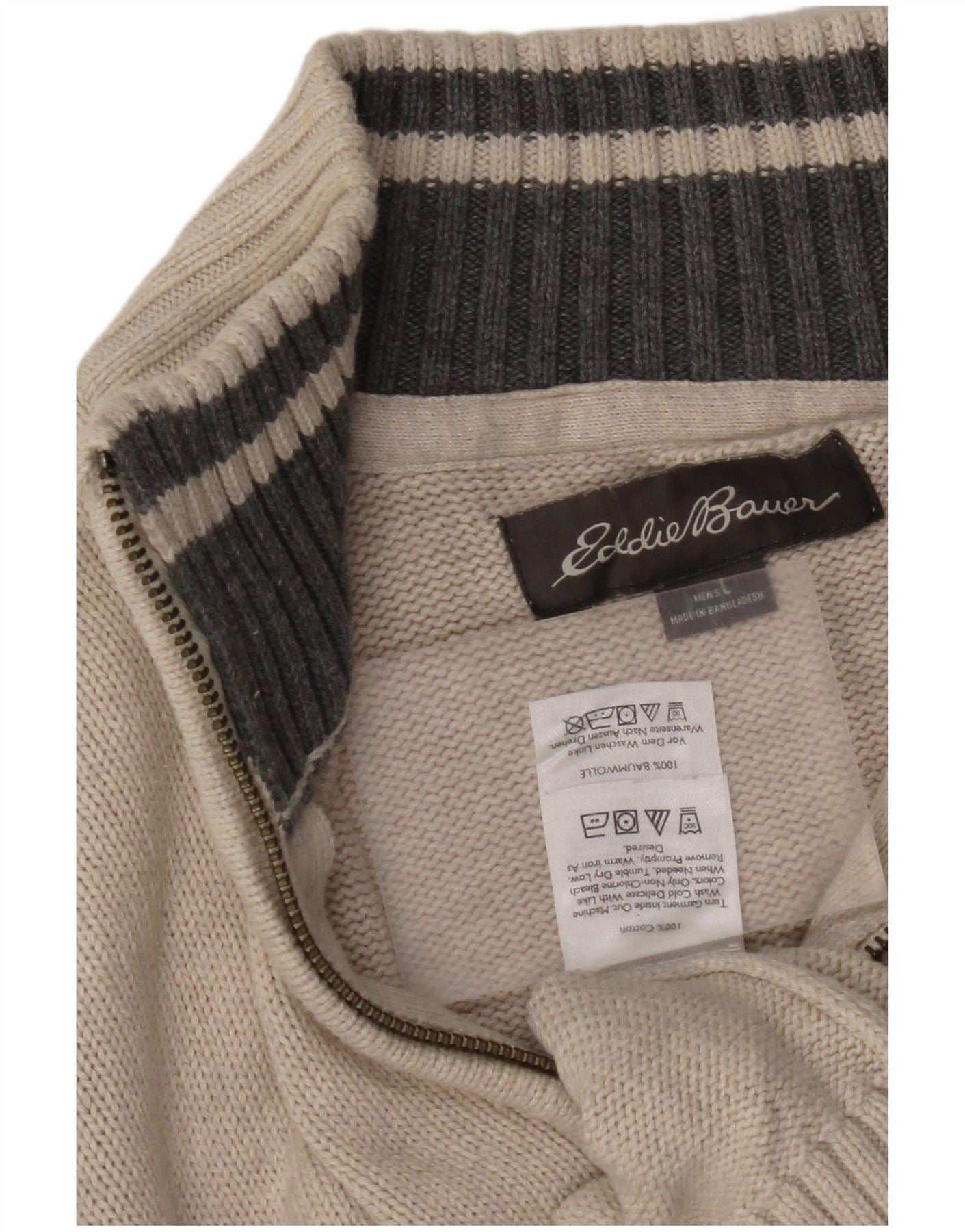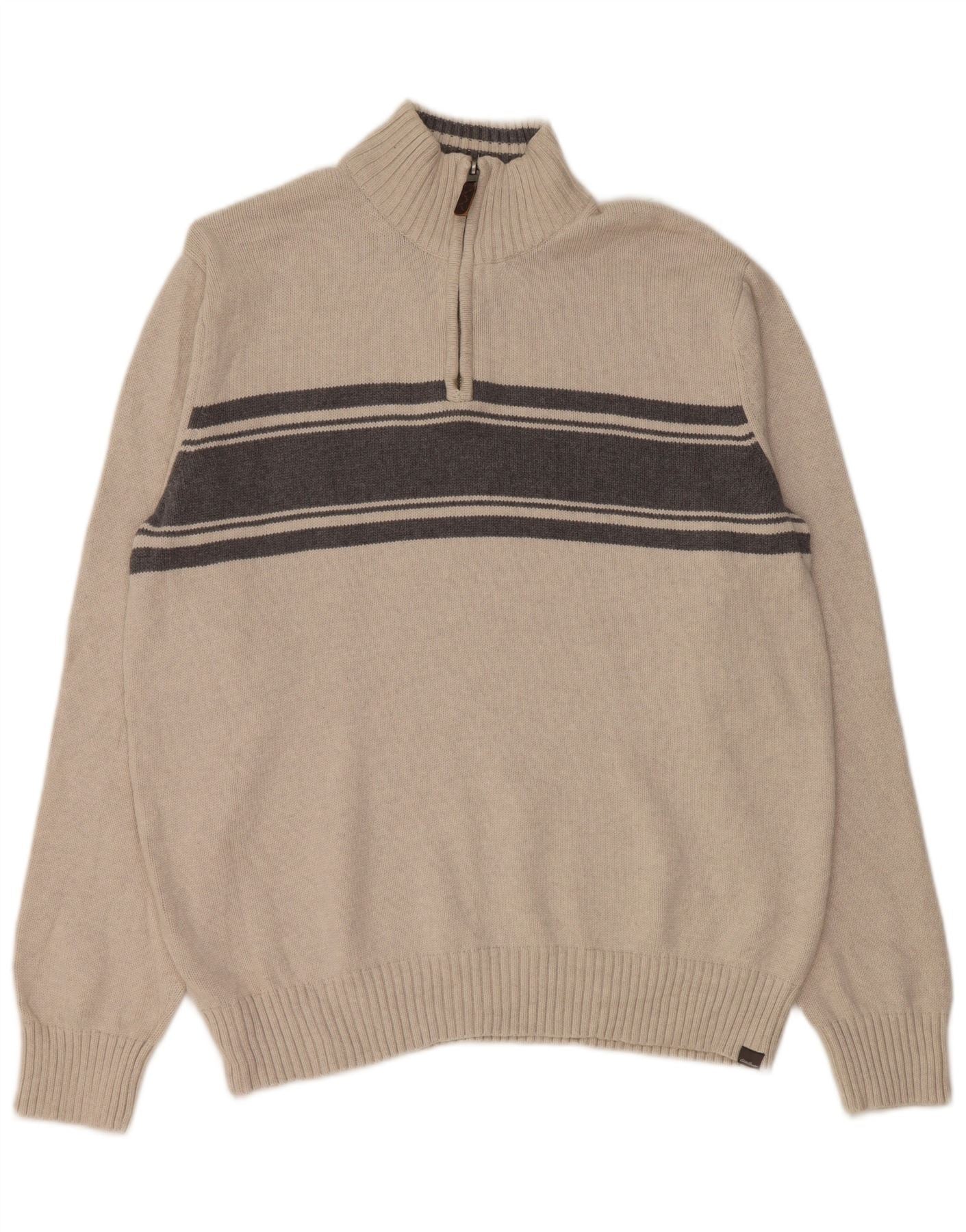 EDDIE BAUER Herren-Pullover mit Reißverschluss am Hals, groß, beige, Colourblock-Baumwolle