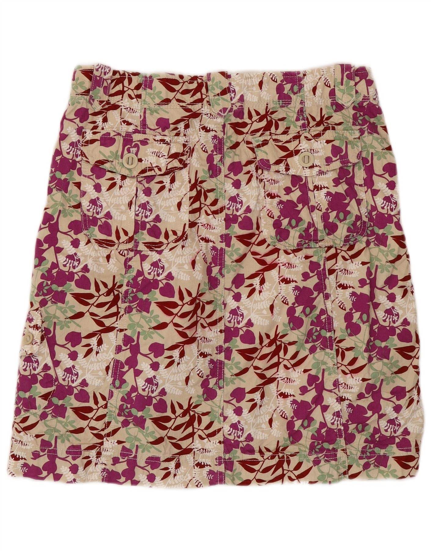 EDDIE BAUER Damen A-Linienrock US 8 Medium W30 Beige geblümte Baumwolle