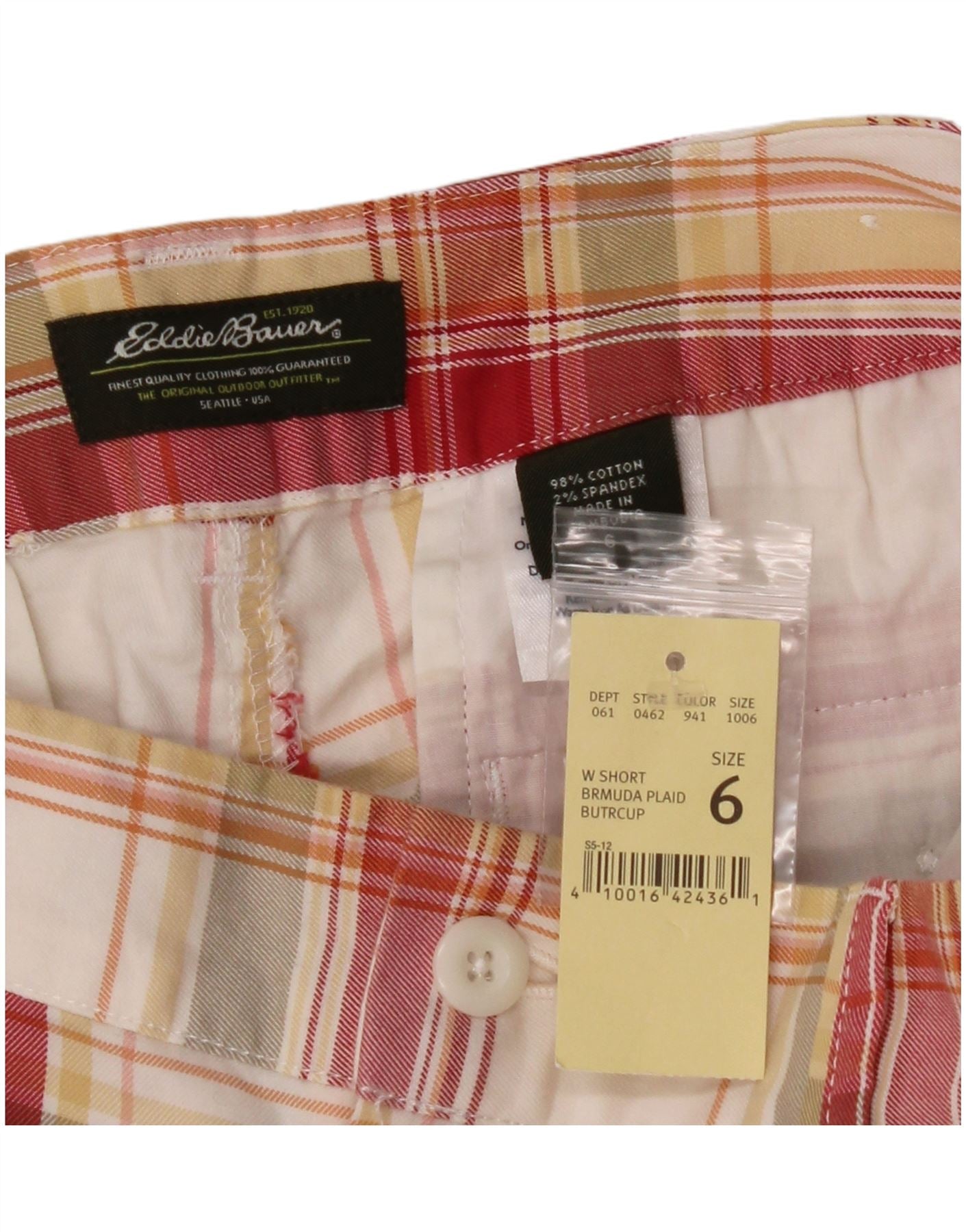 EDDIE BAUER Damen Chinoshorts US 6 Medium W30 Rot karierte Baumwolle