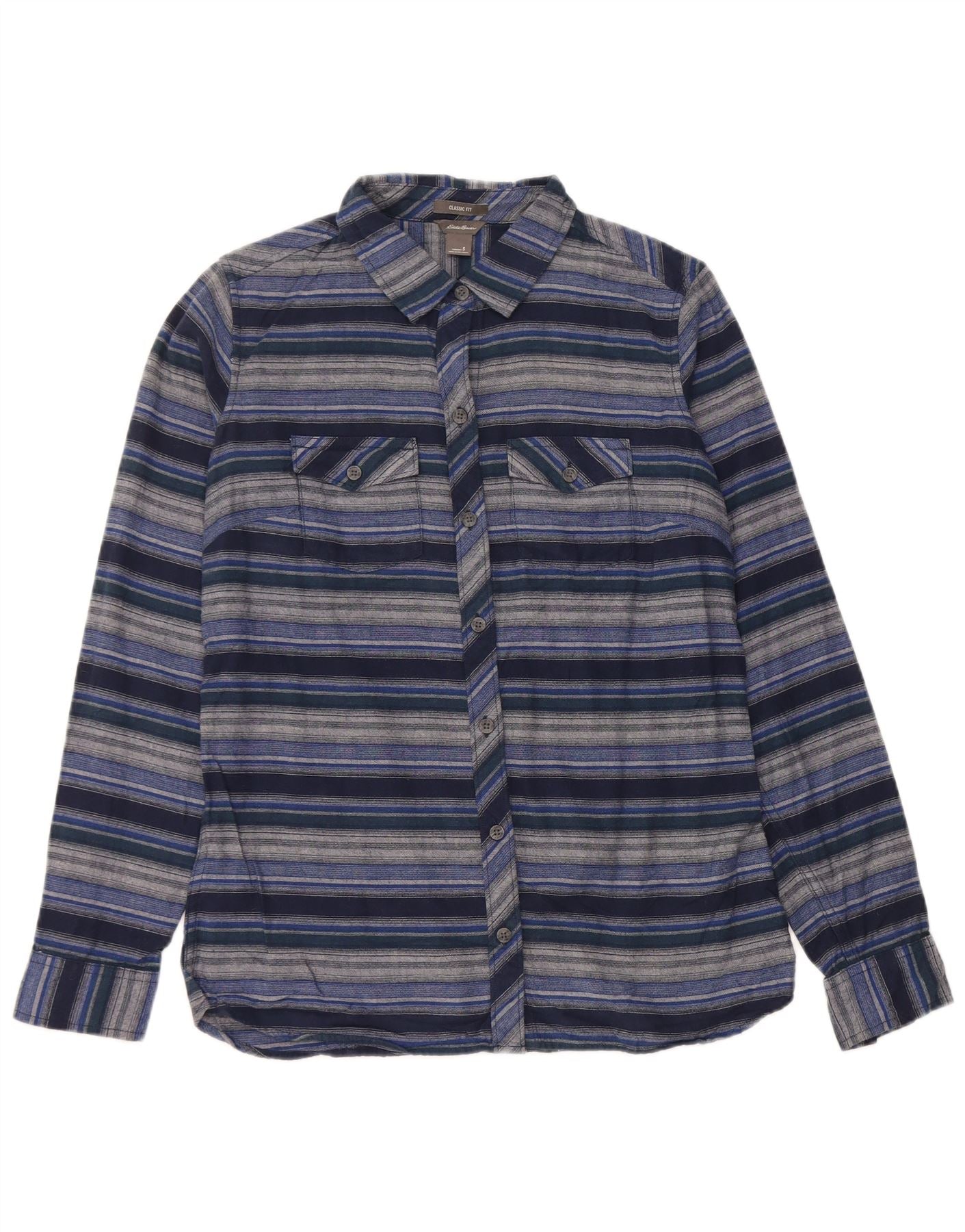 EDDIE BAUER Damen-Flanellhemd mit klassischer Passform, UK 10, Größe S, Marineblau gestreift