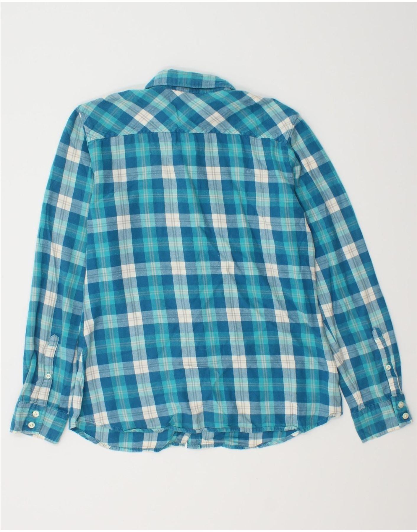EDDIE BAUER Damen Flanellhemd UK 10 Small Blue Check Baumwolle