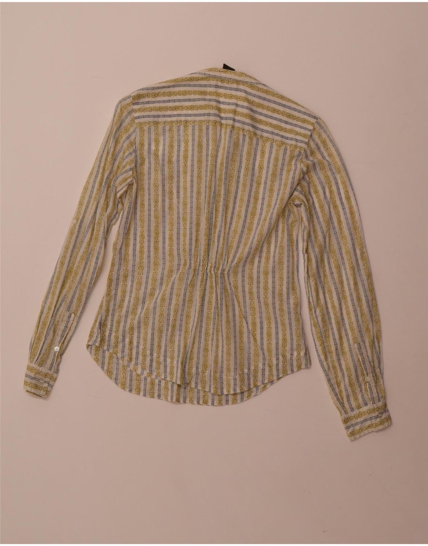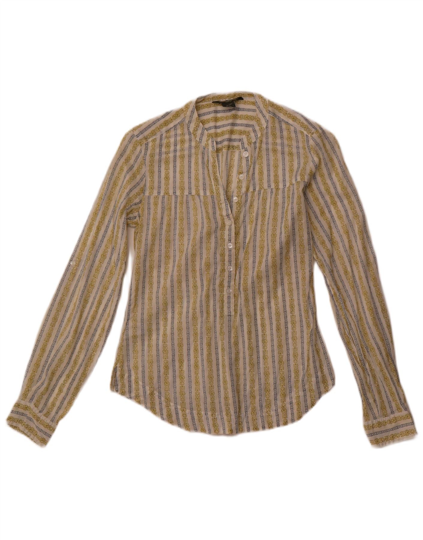 - KI-Beschreibung: Diese Damen-Hemdbluse von Eddie Bauer ist aus 100 % Baumwollgewebe gefertigt und bietet ein leichtes Tragegefühl. Es verfügt über ein mehrfarbiges Streifenmuster, das gebrochene Weiß-, Gelb- und Blautöne kombiniert. Der Kragenausschnitt führt zu einem Knopfverschluss vorne. Lange Ärmel mit geknöpften Manschetten. Seine reguläre Passform sorgt für angenehmen Tragekomfort. Das abstrakte Streifendesign sorgt für visuelles Interesse.