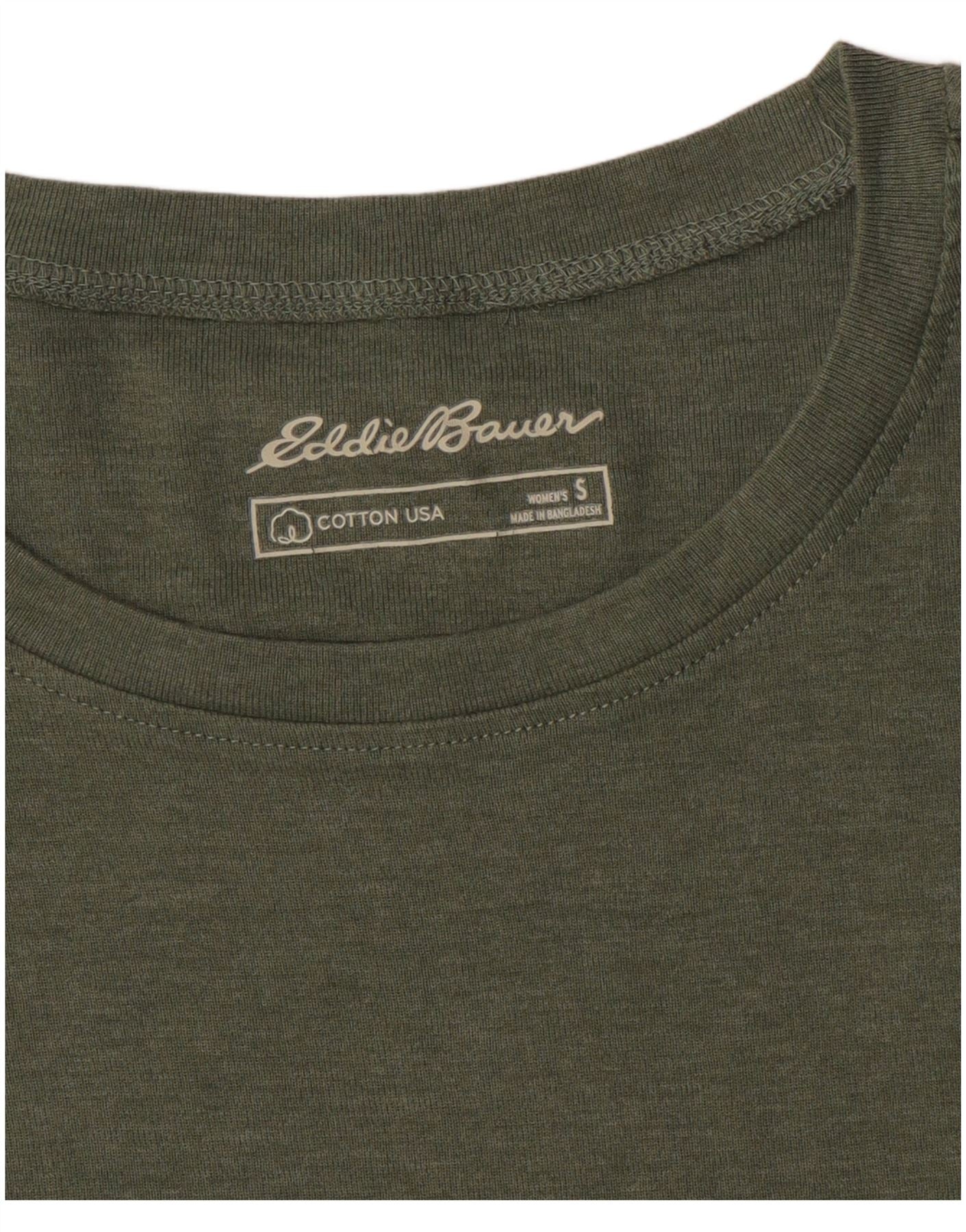 EDDIE BAUER Damen T-Shirt Top UK 10 Small Khaki Baumwolle