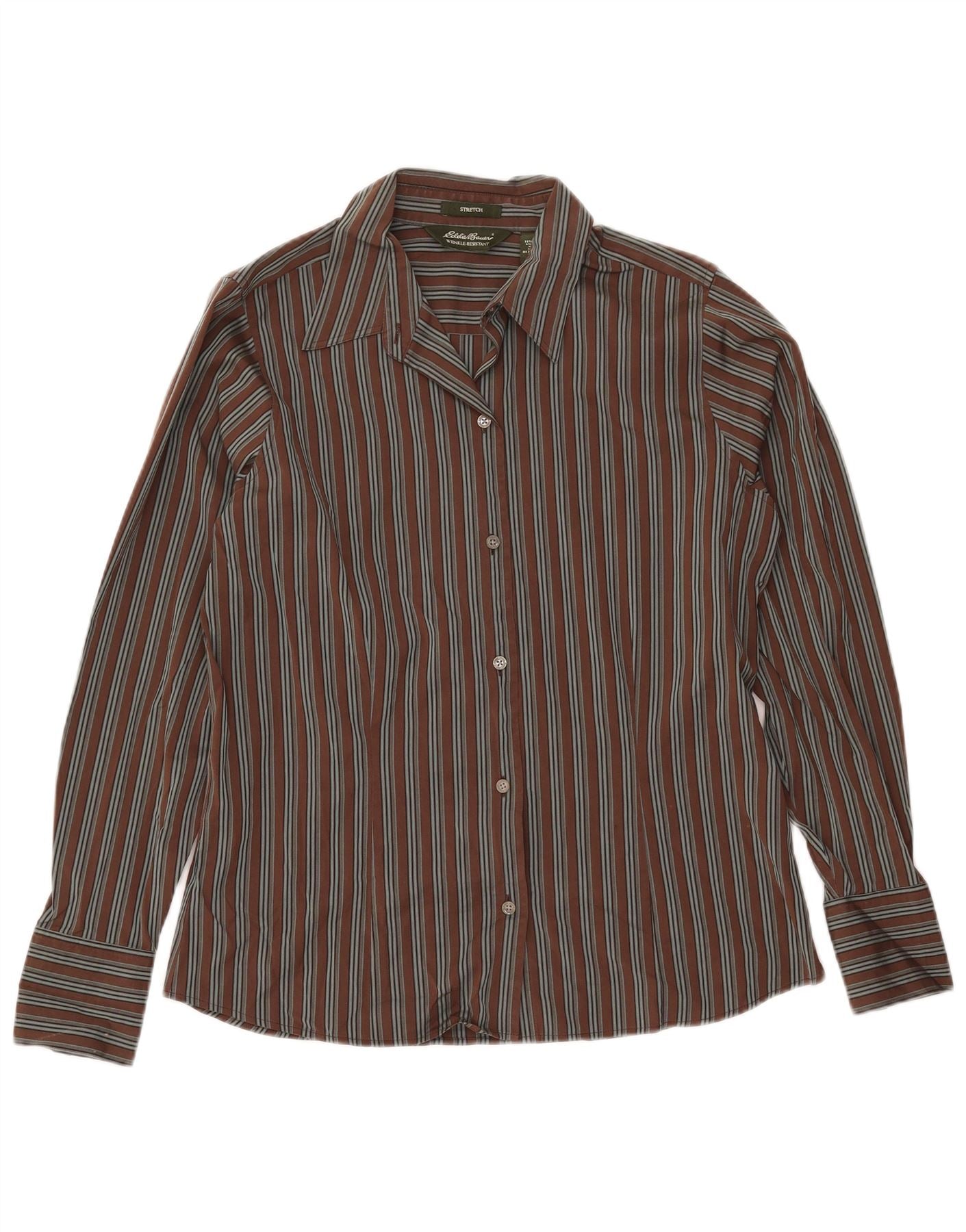 Eddie Bauer Womens Tall Shirt UK 16 Große braun gestreifte Baumwolle