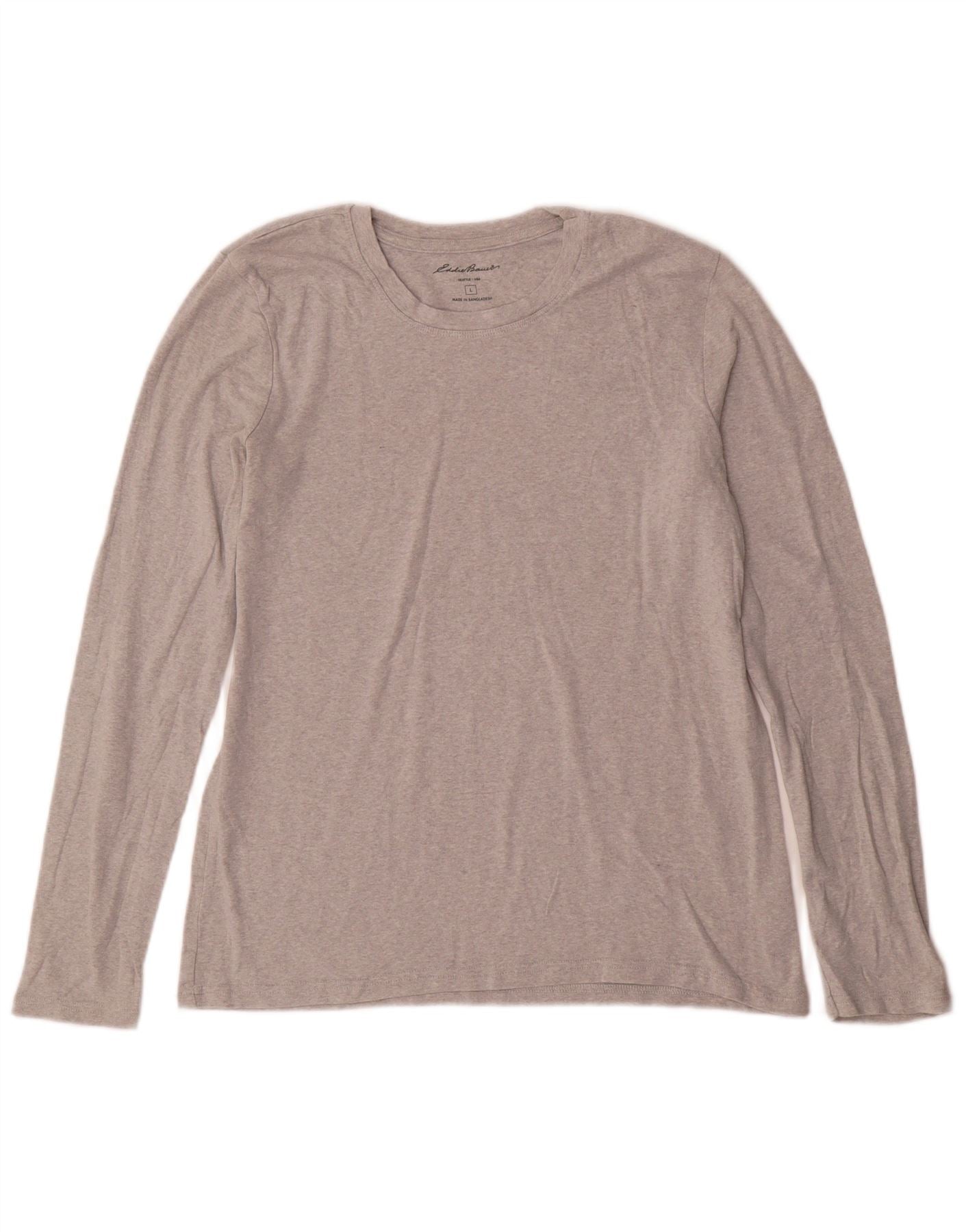 EDDIE BAUER Damen Top Langarm UK 14 Large Grau Baumwolle