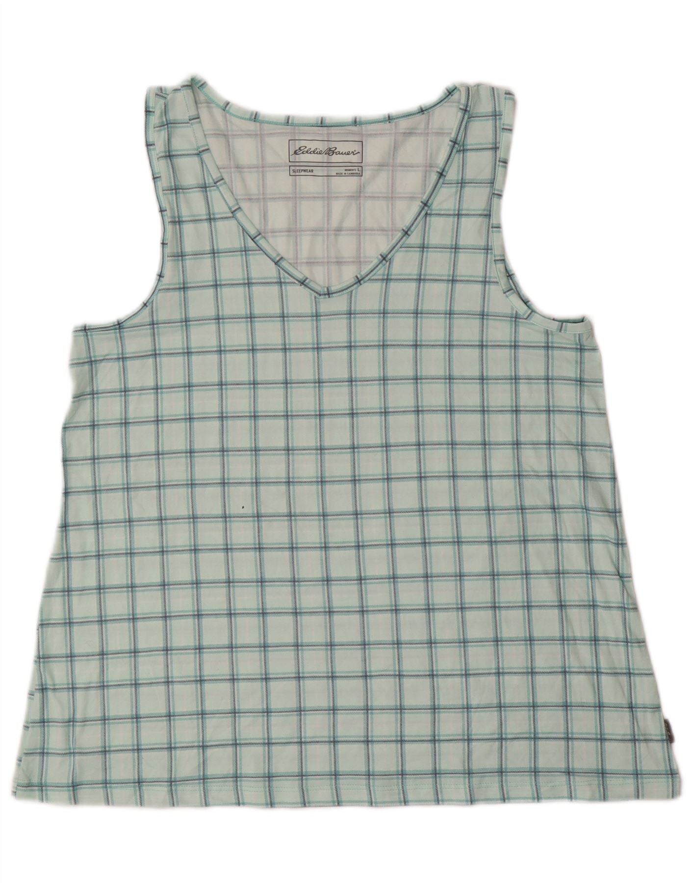 EDDIE BAUER Damen Weste Top UK 16 Large Blue Check Polyester