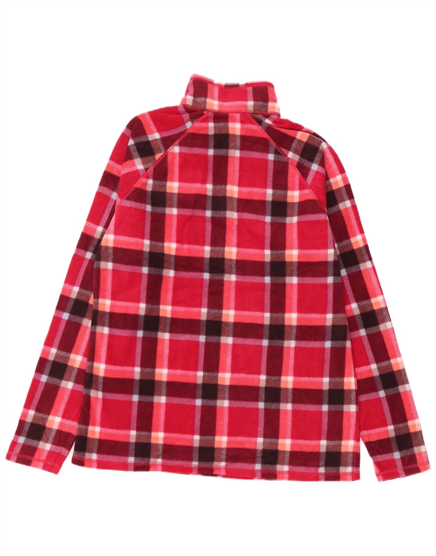 EDDIE BAUER Damen-Fleecepullover mit Reißverschluss am Hals, UK 14, mittelrot, kariert, Polyester