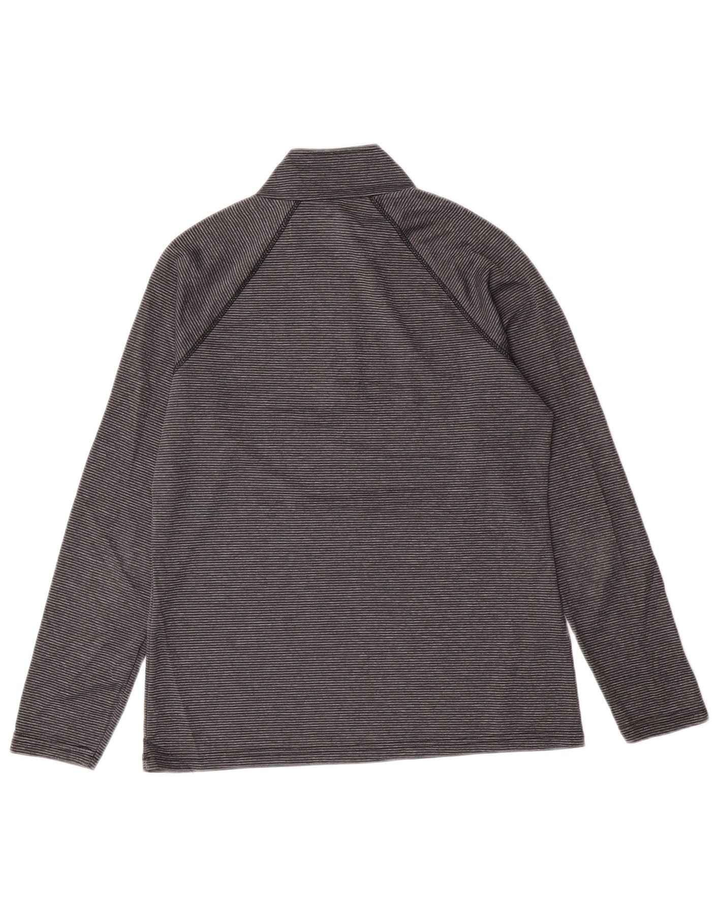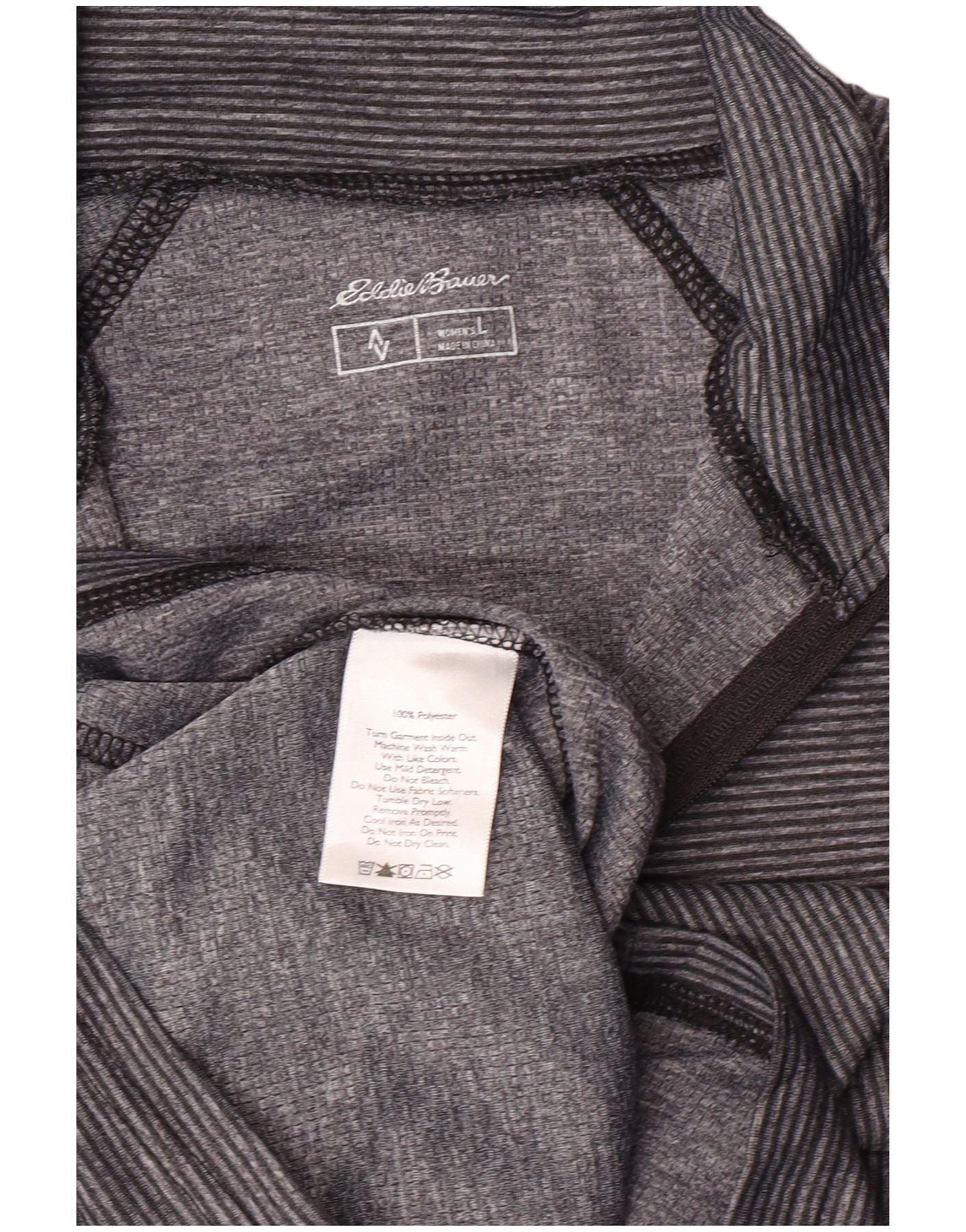 Eddie Bauer Damen-Oberteil mit Reißverschluss, langärmlig, UK-Gr. 44, groß, grau gestreift, Sport