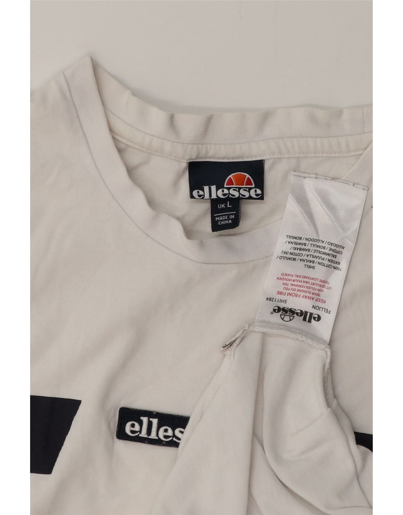 ELLESSE Herren T-Shirt Top Large Weiß Colourblock Baumwolle