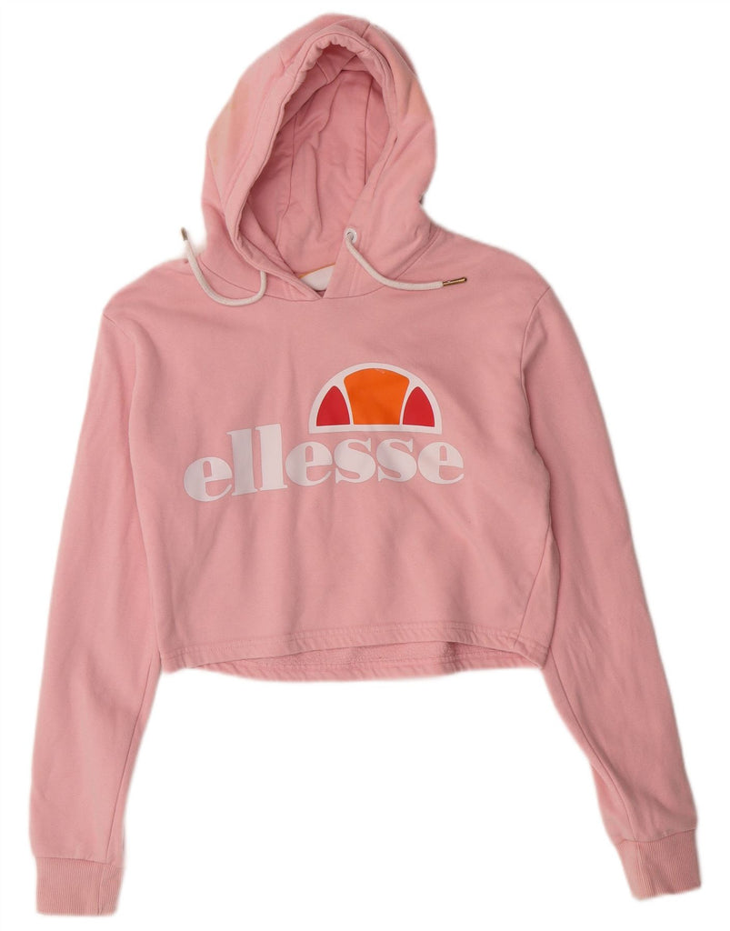 ELLESSE Womens Crop Graphic Hoodie Jumper UK 12 Medium Pink Colourblock
