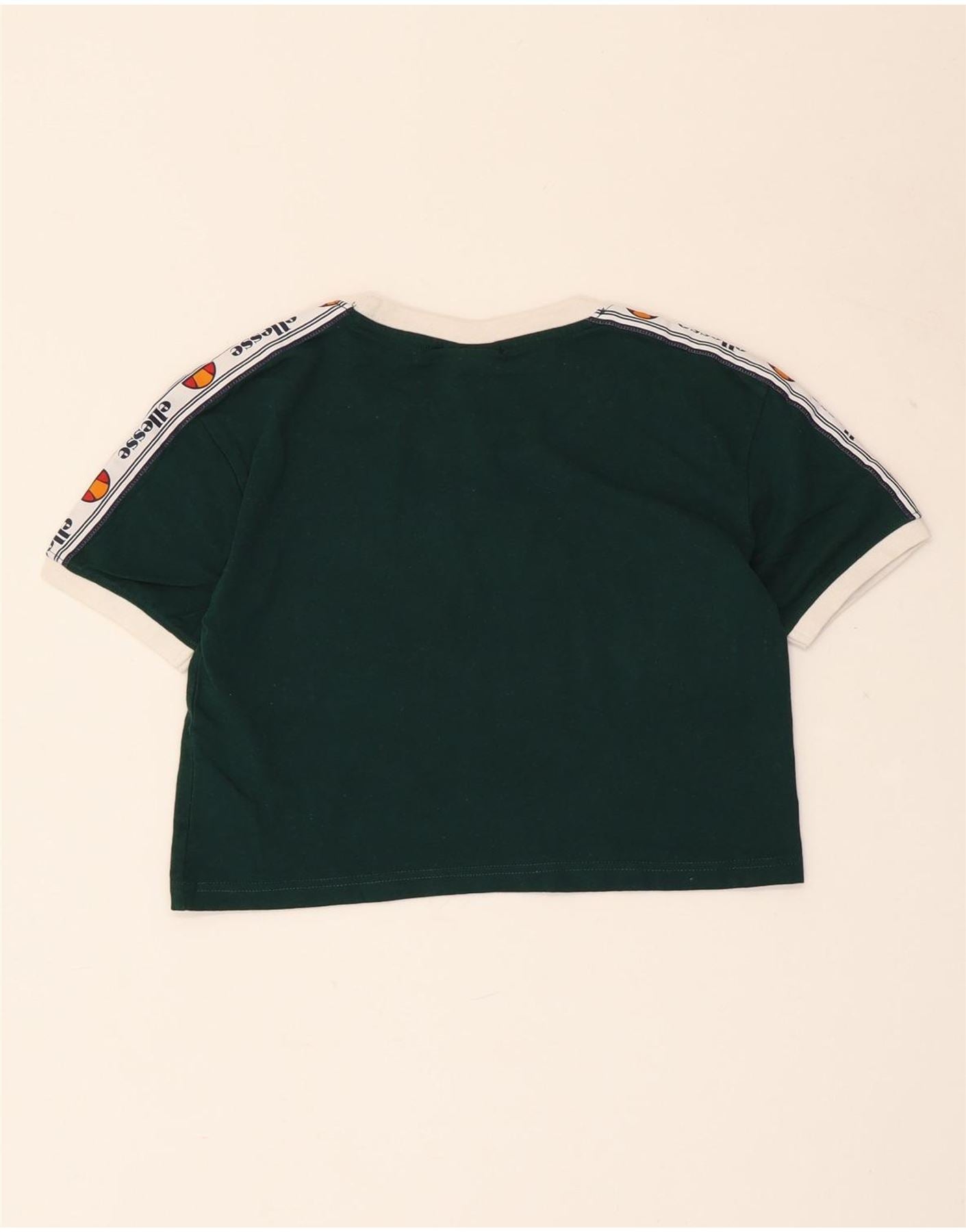 ELLESSE Damen Crop Graphic T-Shirt Top UK 4 XS Grüne Baumwolle