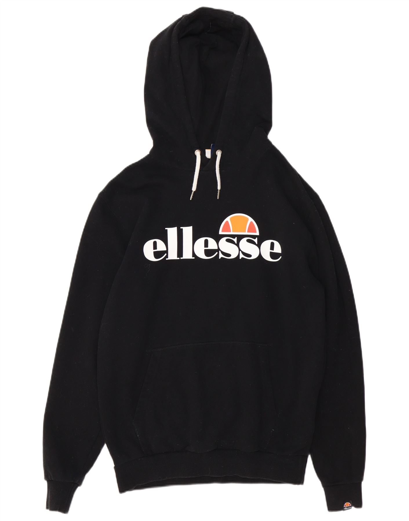 ELLESSE Womens Graphic Hoodie Pullover UK 14 Mittelschwarze Baumwolle