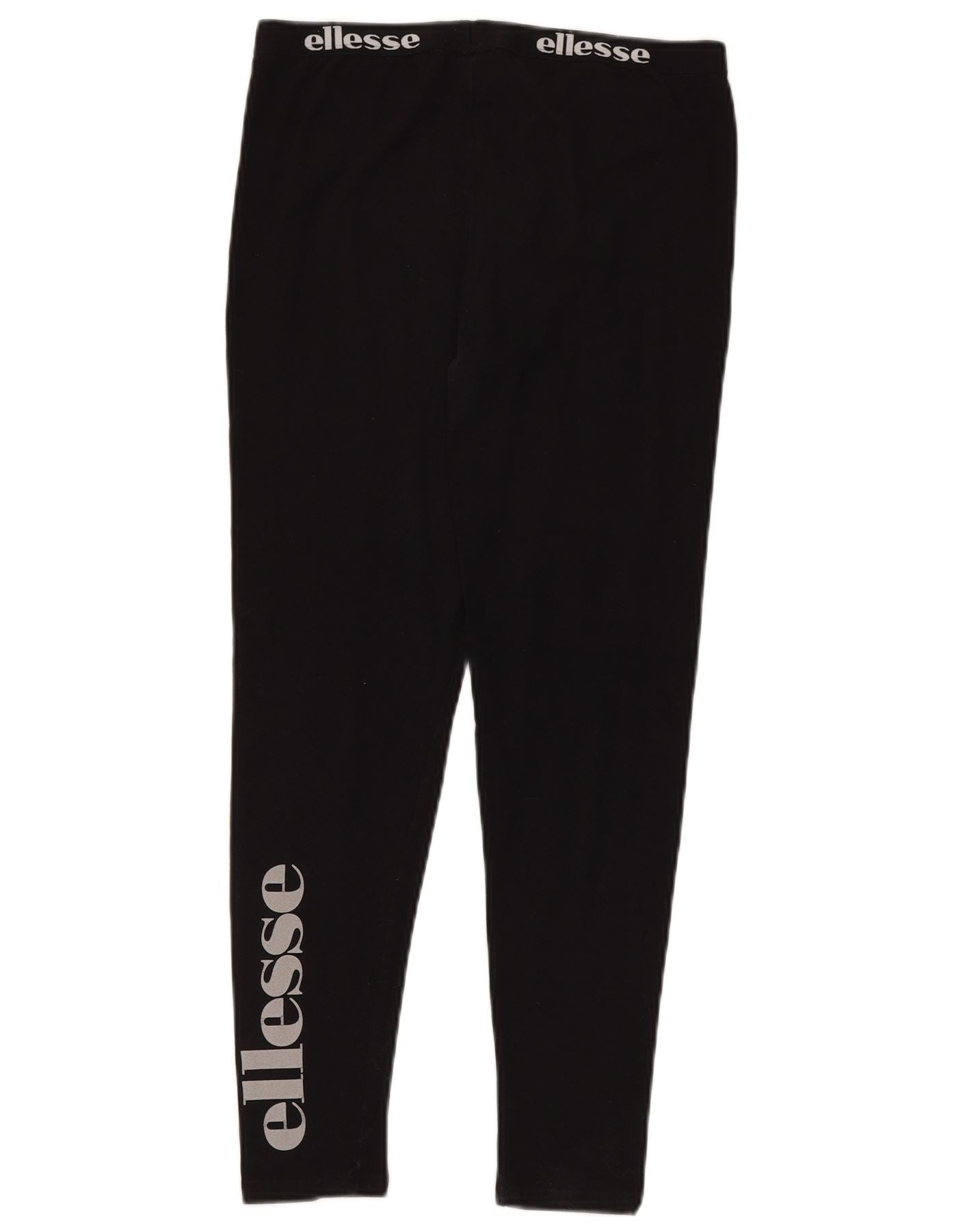ELLESSE Womens Graphic Leggings UK 12 Mittelschwarze Baumwolle