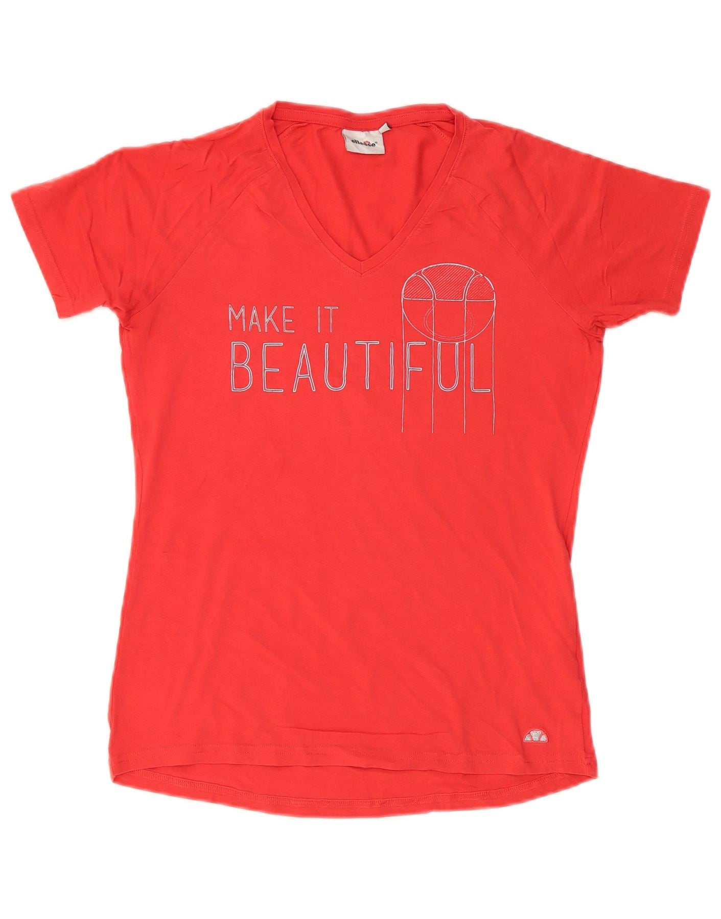 Ellesse Womens Graphic T-Shirt Top UK 14 Große rote Baumwolle