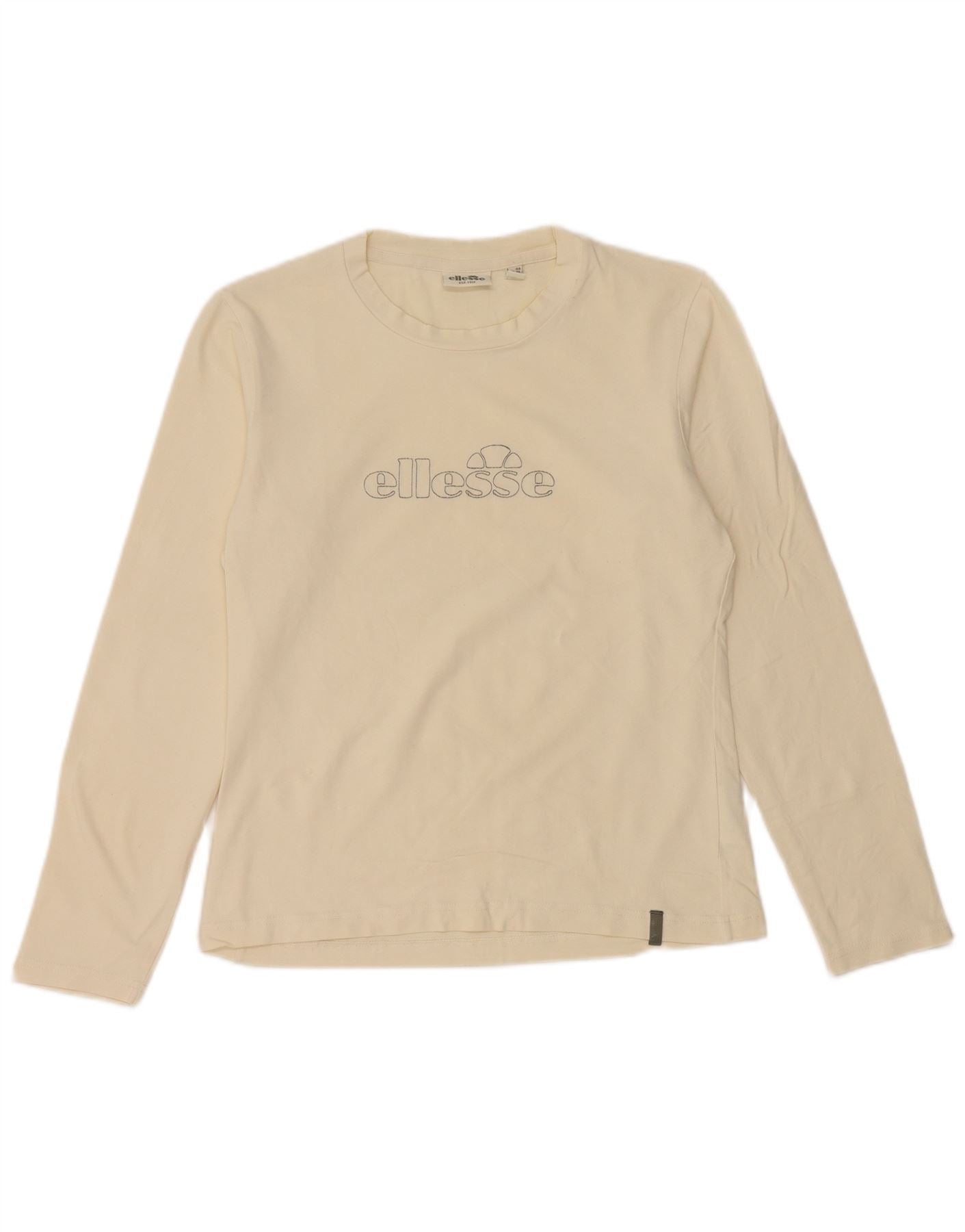 ELLESSE Womens Graphic Top Langarm UK 16 Large Off White Baumwolle