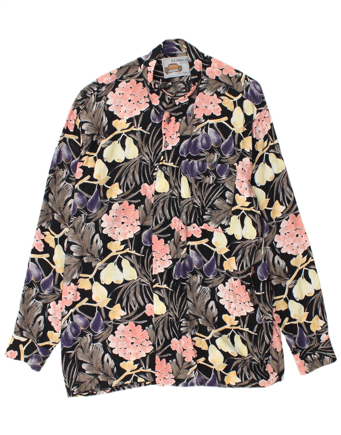 ELSBACH Herren Pullover Shirt Größe 41/42 Große schwarze Viskose mit Blumenmuster