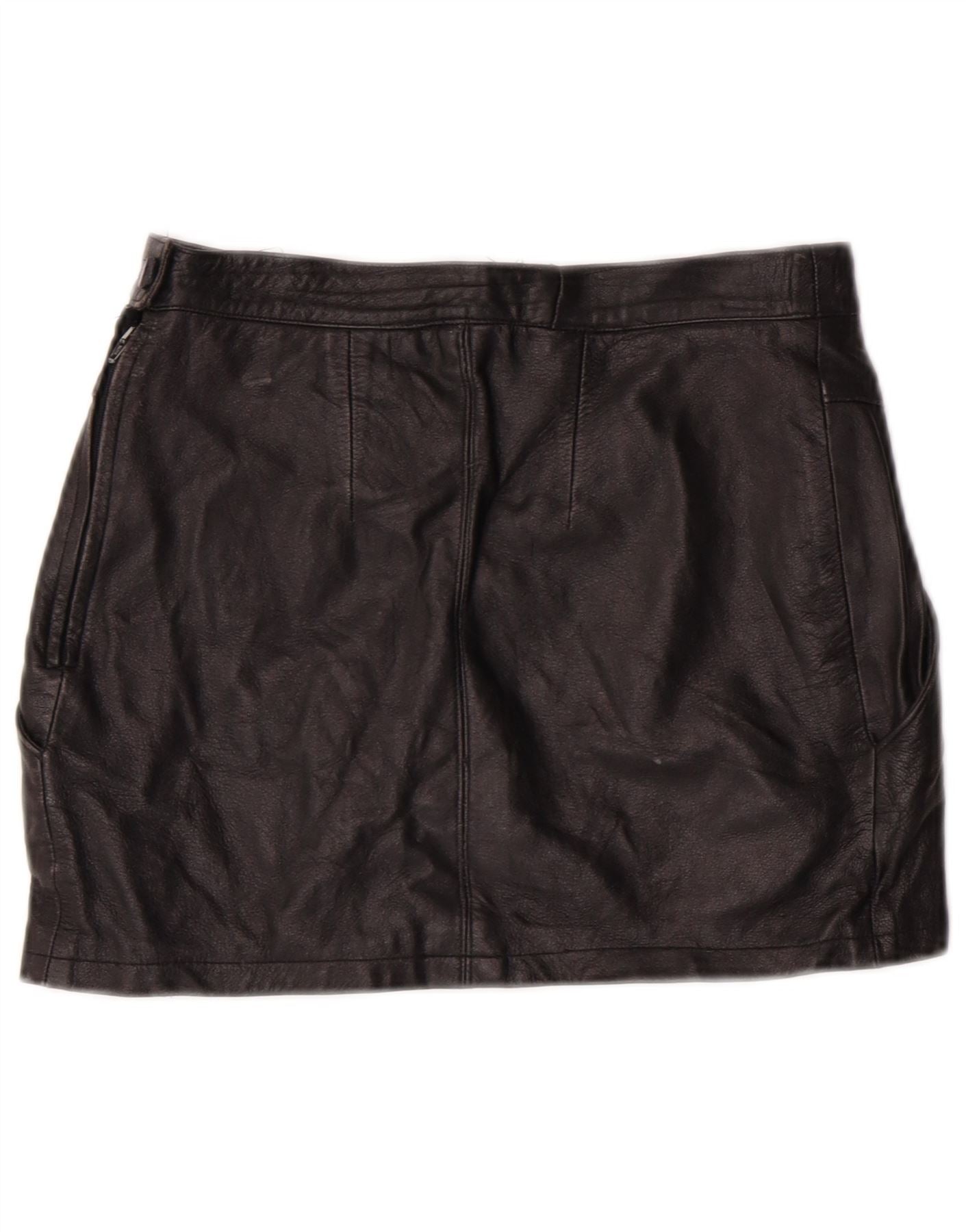 EMBASSY Damen Lederrock mit hoher Taille IT 46 Large W26 Schwarzes Leder